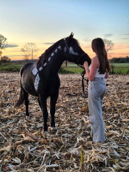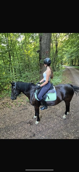 Hello everyone, We are looking for a new home for our Pino. Pino is between 5 and 8 years old and is a Polish riding pony. He has been with us for over two years now, and over time we’ve realized that it simply isn’t the right fit — both under saddle and within the herd, he tends to cause trouble. He is a dominant horse and is fully aware of his status, which he maintains in his interactions with the other horses. Another issue is riding. Unfortunately, we don’t have an indoor arena, and in summer, we only have a grass paddock. As a result, we mainly ride in the field, where he remains quite insecure and easily spooked, even after two years in the same terrain. Usually, he improves in summer, but during winter, his confidence drops again. Additionally, he has more energy in winter that he needs to burn off. We also have a trainer who works with him successfully. Overall, he is a sweet boy, but he requires someone with plenty of time, patience, and riding experience. Regrettably, we can no longer meet his needs, both time-wise and in terms of riding, and we believe he would be better suited elsewhere — somewhere where his full potential can be realized. Pino also enjoys jumping. He is well-behaved at the blacksmith and in general handling. Pino is not intended to become a trophy horse; therefore, he will not be sold to riding schools, dealers, or commercial operations. We are only looking for a private individual — no children, please! Pino is demanding, but I firmly believe he can become a wonderful riding pony with the right person. Please feel free to contact us if you have any questions. Saddle, bridle, and accessories are included.
