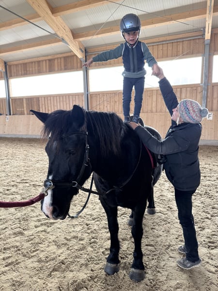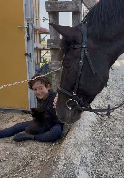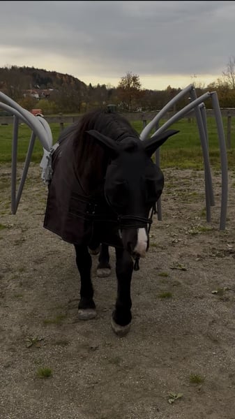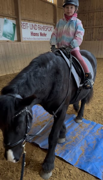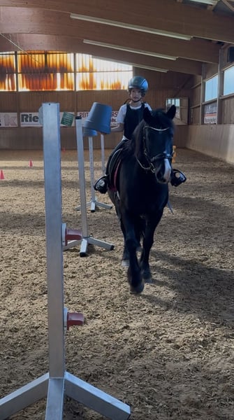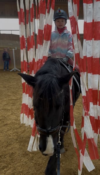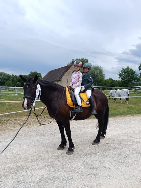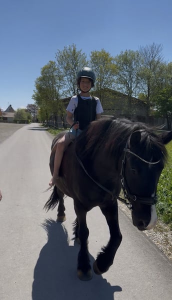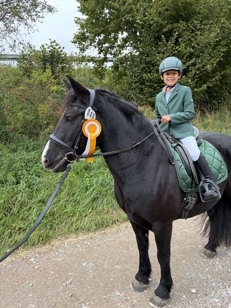 Mit schwerem Herzen, aber aus wohlüberlegten Gründen, suchen wir für unseren siebenjährigen Wallach ein neues Zuhause, in dem er weiter gefördert, geliebt und vielseitig beschäftigt wird. Er ist ein sehr robuster, stabil gebauter Typ mit gutem Fundament. Seit er bei uns ist, war er stets gesund und hatte keinerlei Probleme. Er ist schon immer barhuf und verfügt über sehr gute, harte Hufe. Zu uns kam er dreijährig und wurde von Anfang an schonend, ruhig und mit viel Zeit ausgebildet. Er hat in seinem bisherigen Leben ausschließlich positive Erfahrungen gemacht. Die Grundausbildung erfolgte zunächst viel vom Boden aus: Spaziergänge, Gelassenheitstraining, Vertrauen aufbauen. Von Beginn an war er viel mit Kindern unterwegs, sowohl geführt als auch später geritten. Im Alltag zeigt er sich absolut unerschrocken und geländesicher. Er geht gerne und zuverlässig ins Gelände, auch auf längeren Strecken, und ist dort in allen drei Gangarten sicher zu reiten. Verkehr, Umweltreize und neue Situationen bringen ihn nicht aus der Ruhe. Dressurmäßig ist er solide bis E-Niveau ausgebildet. Dabei wurde stets darauf geachtet, ihn nicht zu überfordern: Nach intensiveren Lernphasen hatte er immer wieder längere Pausen. Als Offenstallpferd konnte er diese Auszeiten wirklich genießen – im Sommer 24/7 auf der Koppel, im Winter im Offenstall. Gerade als etwas kräftigerer Typ hat ihm diese artgerechte Haltung sehr gutgetan und man merkt ihm an, wie ausgeglichen und zufrieden er ist. Auch im Springen zeigt er viel Potenzial und Freude an der Arbeit. Er springt ein schönes, flüssiges Freispringen, ist bereits kleine Parcours gegangen und hat an Stangen- sowie Springgymnastikkursen teilgenommen. Zudem war er mit mir zweimal auf der Geländestrecke, wo er feste Hindernisse kennengelernt hat. Offener Graben, Stufen hoch und runter, Wasser – all das hat er mutig angenommen. Besonders beeindruckend: Er ist freudig ins Wasser galoppiert und anschließend über eine Stufe wieder herausgesprungen. Dabei war er stets motiviert, ehrlich und mit sichtbarem Spaß bei der Sache. Turniererfahrung bringt er ebenfalls mit. Er war mit kleinen Kindern erfolgreich in Führzügelklassen unterwegs, unter anderem mit einer sechsjährigen Reiterin, was sogar dreijährig bereits hervorragend funktioniert hat. Mit einem etwas größeren Kind ist er Schritt-Trab-Wettbewerbe gegangen. Außerdem wurde er von einer erwachsenen Reiterin bereits in einer E-Dressur vorgestellt. Auf dem Turnier zeigt er sich neugierig, mutig und souverän. Deko, fremde Umgebungen und Abreiteplätze stellen für ihn kein Problem dar – er bleibt stets ansprechbar und brav. Zusätzlich hat er an Geschicklichkeitsprüfungen teilgenommen, sowohl geritten als auch geführt mit Kindern, und auch hier mit seiner Gelassenheit und seinem Mitdenken überzeugt. Er ist absolut unkompliziert im Umgang, kennt Kinder, ist verladefromm und läuft selbstständig in den Hänger. Ein echtes Familienpony, das Sicherheit gibt, motiviert mitdenkt und seinem Reiter ein verlässlicher Partner ist – egal ob im Alltag, im Gelände oder auf dem Turnier.