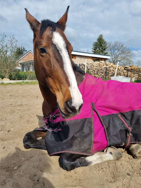 Diese Zeilen zu schreiben fällt mir sehr schwer. Ich weiß auch gar nicht so recht wo ich anfangen soll. Dafnia ist eine polnische warmblut stute 2009 geboren und seit 2015 in meinem Besitz. Sie ist eine sehr liebe im Umgang tolles Pferd. Sie kann man überall anfassen, lässt sich oft ohne Sedierung behandeln und ist einfach im Umgang ein goldschatz. Was das Reiten betrifft, haben wir viel gemacht. Ich habe sie damals direkt vom Züchter gekauft. Dort ging sie Vielseitigkeit. Ich bin mit ihr springen gegangen. Inzwischen ist sie in einem Alter, wo sie nicht mehr springt. Sie hat auch vorne Arthrose. Röntgenbilder sind vorhanden. Sie hatte noch nie die besten Hufe kaum trachte und braucht daher vorne auf jeden Fall Eisen, je nach bodenbelag auch hinten. Sie liebt es entspannte Ausritte zu machen im Gelände. Auf dem Platz hat sie keine Lust mehr. Bodenarbeit ja aber reiten nicht wirklich. Im Gelände ist sie sicher. Natürlich ist es ein Pferd. Das kann sich immer erschrecken, aber ich habe mit ihr immer wunderschöne Ausritte gehabt. Egal, was kam ob es Rehe waren Trecker oder sonst irgendwas.Sie ist definitiv ein ein Mann Pferd. Sie hatte vor zwei Jahren eine schleimbeutelentzündung im Huf. Danach ein hufgeschwür, was sich sehr lange zog. Seitdem sind wir im aktiven reiten raus. Sie ist in der Zwischenzeit auch umgezogen von boxenhaltung in offenstall Haltung, weil sie morgens immer dicke Beine hatte in der Box. Dadurch muss sie in den offenstall. Seitdem ist sie wieder viel mobiler und die angeschwollenen Beine sind auch weg. Sie ist jedoch dort kurz nach Einzug gestürzt vermuten wir. War nachts, morgens Hatte sie dickes Bein Abschürfungen und der sitzbeinhöcker war angeschwollen. Tierärztlich behandelt wurde sie. Hat aber keine weiteren Folge Beschwerden. Die Osteopathie Physiotherapie war auch da. Das ist nun 1 jahr her .Sie ist eine ranghohe Stute jetzt in der Herde ist der Boss, aber immer fair. Was das Reiten angeht, braucht sie vertrauen. Ich habe es oft probiert mit reitbeteiligungen, was nie funktioniert hat. Sie und ich harmonierten, aber ich habe sie natürlich auch schon eine gewisse Zeit. Wenn ich jetzt hinfahre und sie stand zwei Monate, kann ich mich raufsetzen und einfach ins Gelände gehen. Sie abzugeben. Bricht mir das Herz, aber es ist einfach nicht mehr möglich, sie zu halten. Ich wünsche mir ein Zuhause für sie, wo sie hauptsächlich beisteller ist, aber auch gerne mal mit ins Gelände genommen wird, als Handpferd oder leicht geritten wird. Große Sachen viel reiten. Das ist bei ihr nicht mit drin. Das muss man ganz klar sagen und auch ehrlich sein. Dieses Pferd ist ein tolles Pferd, aber hauptsächlich zum betüddeln und ab und zu mal rausgehen. Sie kennt Kinder ist damit so toll und Hunde. Alles kennt sie. Wer sich für sie interessiert, muss sich im Klaren sein, dass es kein Pferd ist zum täglichen Reiten. Sie ist auch leicht überbaut, dadurch vieles schon immer schwer Unterzufußen aber wir haben es ganz gut hinbekommen. Sie ist Schmiede und verlade fromm. Bitte nur ernst. Gemeinte Interessen sollte wieder im offenstall gehen, immer Heu haben und das es okay ist dass sie Rang hoch ist. Sie wird nur abgeben wenn alles zu 100% passt Sie wird mit allem was sie hat abgegeben Decken usw. Und nochmal dieses Pferd ist Top aber hat ihre Baustellen!! Nur ernstgemeinte Interessen und oder ich nehme sie ohne Sachen oder so ein ganzen Kram nein danke! Bei Fragen gern schreiben 🙂
