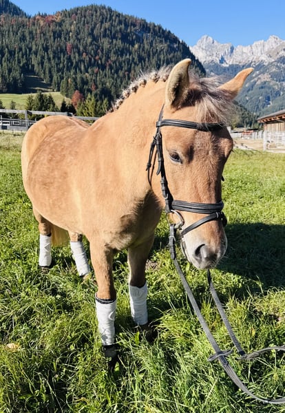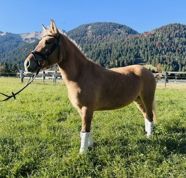 Well-behaved and eager – 4-year-old pony mare with a special coat color seeking a young rider! Our lovely 4-year-old pony mare is looking for a new home with children or teenagers passionate about horses, ideally with support from experienced adults. She impresses not only with her sweet, honest character but also with her unique coat color—a true special marking that makes her a real eye-catcher. In daily handling, she is consistently well-behaved and mannerly—easy to manage, without any vices. Currently, she is being lunged and ridden by teenagers, always cooperative, eager to learn, and resilient. She has plenty of spirit and a willing work ethic, making her a great partner for ambitious young riders in training. She remains friendly and honest at all times—ideal for children or teenagers with some riding experience or in a guided program. - 4 years old - Pony mare - Unique coat color / special marking - Well-behaved, honest & reliable - With a good amount of go - No vices, easy to handle - Currently ridden by teenagers on the lunge - Not suitable for beginners—only for experienced riders or under supervision due to age - Trial riding on the lunge possible We look forward to your inquiries and are happy to provide further information or arrange a viewing!