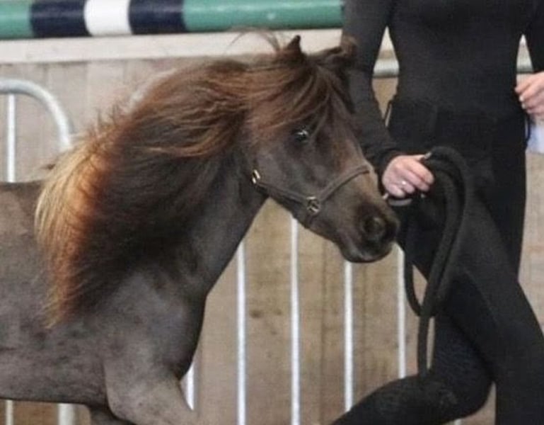Una hermosa y pura ejemplar hembra de Falabella con un carácter muy dulce, de padres aprobados. Su color es smokey black pinto (probada en color). Tiene una cabeza muy bonita, es de tipo excelente y puede moverse de manera muy amplia y fuerte. Registrada en el Studbook Europeo de Falabella, reconocido por la UE. Con pruebas de ADN para confirmar la paternidad y pureza de raza. La colocamos solo en un buen hogar que tenga otra yegua o pony; también podemos encargarnos de eso si es necesario. Precio a consultar. Más información en Alpaca-Falabellaranch.nl