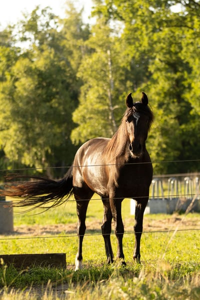 Midnight is geboren op 04-06-2022 om middernacht in Ribbesbüttel. Bij onze laatste meting in oktober 2024 was hij 154 cm groot. Aangezien hij toen pas 2,5 jaar oud was, vermoeden we dat zijn eindmaat iets groter zal worden. Midnights moeder is de betoverende Ierse Jules, zijn vader de prachtige Foxtrotter Donavon. Midnight is groot, cool, sportief en vriendelijk. Met zijn twee jonge paardenvrienden galoppeert hij hier veel over de wei. Van jongs af aan heeft hij veel getölt, wat hij onder de ruiter zeker ook zal doen. Midnight is een echte ruwe diamant om zelf op te leiden. We nemen hem af en toe mee als handpaard op buitenritten, daarbij is hij heel lief. Video's hiervan zijn te vinden op Instagram bij gangpferde_ribbesbuettel. Wie op zoek is naar een grote töltende paard voor een kleine prijs, krijgt hier een paard dat toch onder optimale omstandigheden is opgevoed. Onze paarden willen alleen verkocht worden aan stallen waar ze 24 uur per dag de mogelijkheid hebben om vrij te bewegen en met andere paarden te zijn. Voor ons is voldoende ruimte voor elk paard belangrijk, zodat ze ook in de winter op de uitloop kunnen galopperen, voldoende eetplaatsen voor het aantal geplande paarden, passende gezelschap 24/7 en een onderkomen dat zachte ligplaatsen en beschutting tegen de weersomstandigheden in elk seizoen biedt. Daarnaast is het voor ons belangrijk dat onze paardjes ook in de toekomst voldoende, meerdere keren per jaar worden ontwormd en de immunisatie tegen tetanus krijgen. Wanneer u contact met ons opneemt, vragen we u om foto's van uw paardenstal, om te kijken of de juiste voorwaarden voor het betreffende paard aanwezig zijn. Zo zorgen we ervoor dat onze paarden ook in de toekomst vriendelijke, betrokken en gezonde partners voor u blijven. Duurzame paardverkoop is voor ons een kwestie van het hart.