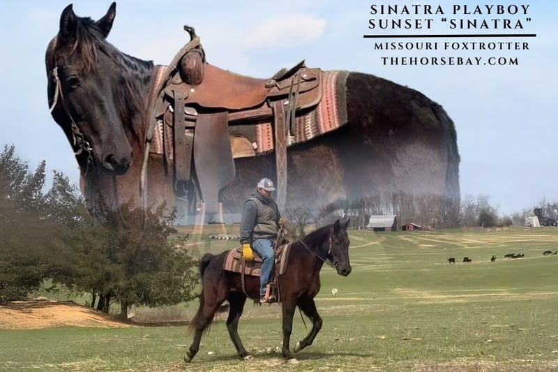 Meet Sinatra, the definition of a “Unicorn” family horse. At 5 years old, this 15.1-hand registered black Missouri Fox Trotter gelding is ready to be your #1 trail buddy. Sinatra is broke for the entire family, from confident beginners to experienced riders. He has a super gentle disposition and a willing attitude, making him an ideal mount for trail riding, camping, or just enjoying nature. He walks quietly on a loose rein but has an incredibly natural, smooth gait when asked. He will fox trot and running-walk. Sinatra is a true family horse. Anyone can ride him. He stays levelheaded and broke every single time you get him out to ride. Sinatra is the true definition of a once-in-a-lifetime horse. You won’t find one any better. Sinatra has also been shown several times at the local horse shows. He has won many blue ribbons. Sinatra has been on many overnight camping trips across the U.S. If the videos aren’t enough, come take him for a ride!