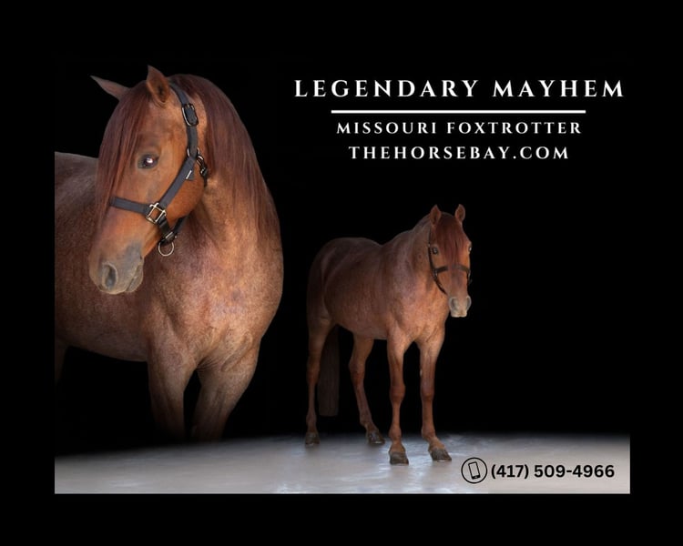 OPEN BIDDING ON THEHORSEBAY,COM. SALE ENDS ON 07/10 @ 5:40PM CT. More information is available on the website, including an UTD vet inspection, Coggins, video, images, and the owner's contact information to ask questions, request information, or make arrangements to come to visit. Legendary Mayhem, a.k.a Legend, is a registered Missouri fox trotter that is coming six years old. He is a great trail horse ridden in Arkansas, Missouri, Pennsylvania, and Ohio. He has a smooth gait and sweet lope as well. Legend is traffic-safe and ATV-safe. He can sit for two weeks and come out on a loose rein. He will also stand for mounting block and neck reins. He will easily cross through water and logs to load, stands in the crossties, and is easy to clip and bathe. He will follow or lead on Traill’s rides and goes out on loose rein. He has a current Coggins and has been dewormed.