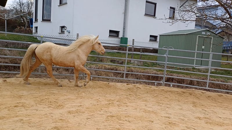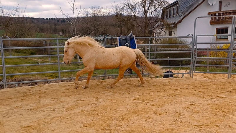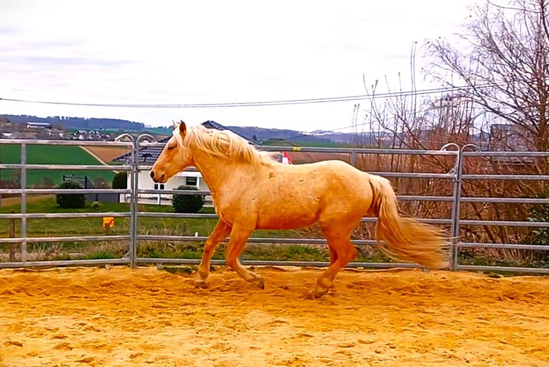 Gerrit is a stallion of top class with his lineage. Both of his offspring have already convinced me, so I intend to have him approved soon by the special breeding association for Missouri Foxtrotters in Europe. Gerrit comes from the pairing of the most used and best-approved breeding stallion Gunslingers Velvet Vegas in the special breeding association for Missouri Foxtrotters in Europe and a Jester's Charming Legend mare. Jester's Charming Legend is a top stallion from the USA who has sired numerous world champions, reserve world champions, and champions. Gerrit has very expansive gaits and a pronounced rhythm/beat. He regularly demonstrates his breed-specific gaits, Foxtrot and Flat Foot Walk, in the pasture (natural foxtrotter). Videos 3 and 4 showcase his natural, completely untrained breed-specific gaits at the age of 2 years and 3/4 months. Gerrit already has 2 offspring that have greatly impressed me. Terms like great, wonderful, or dreamy are not used by me, as they lack objective significance. Pictures 6 and 7 show his two young filly offspring. More about this can be found at https://www.facebook.com/photo?fbid=1383389949757617&set=pcb.1383394859757126 Video 1 shows that even at the age of 5 days, he is brave and cool-tempered. Video 2 shows him in the peaceful stallion herd. 3 of them have already covered in natural breeding. See also my homepage at http://www.taunus-foxtrotter-ranch.net