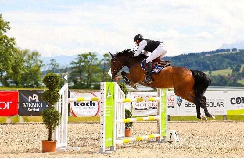 Gohane verfügt über Turniererfahrung im Springsport. Er war in der Schweiz erfolgreich bis 125 cm im Einsatz, hat jedoch Potenzial für mehr. Im Training springt er mit mir Parcours bis 150 cm und zeigt dabei stets Vermögen, Übersicht und Freude an der Arbeit. Auf dem Turnier präsentiert sich Gohane sowohl im Parcours als auch beim Abreiten sehr brav und konzentriert. Er ist absolut unkompliziert, steigt oder bockt nicht und eignet sich dadurch auch hervorragend für ambitionierte Junioren oder Amateure. Im täglichen Umgang ist er sehr liebevoll, ruhig und angenehm zu handeln. Er ist ein echtes Verlasspferd im Stall und im Umgang. Standort: Dettighofen DE 2 km von der Schweizer Grenze Bei ernsthaftem Interesse und für weitere Informationen freuen wir uns über eine Kontaktaufnahme.