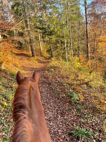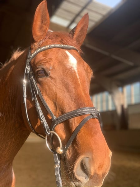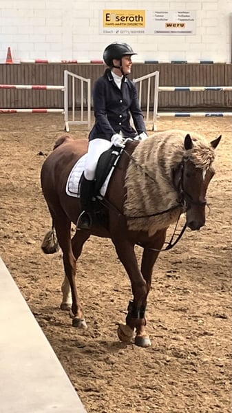 Goldfeivel ist ein treuer zuverlässiger Begleiter. Schweren Herzens suchen wir für unseren Goldfeivel ein neues Zuhause, da sich viel in unserem Leben verändert hat und nun zu wenig Zeit für ihn da ist. Goldfeivel ist besonders vielseitig! An der Longe hat mein Mann auf ihm reiten gelernt. Ich bin als Reitanfänger auf ihm geritten und unsere Tochter ist mit ihm bis A** im Turnier und im Training zum Schluss bis M Niveau gesprungen. Im Gelände hat er uns alle drei sicher begleitet. Meine Tochter ist auch allein mit ihm ausgeritten, auch mal ohne Sattel. Bodenarbeit, Longieren, frei Laufenlassen, Freispringen, Quadrille reiten, Geschicklichkeitsparcour, Ausritte machen mit ihm Freude. Er ist fein in den Hilfen und hat einen wundervollen Schwung. Goldfeivel passt auf seinen Reiter auf. Er ist unkompliziert, verladefromm und schmiedefromm, verkleidungstolerant. Er eignet sich besonders für Springreitanfänger, um Sicherheit zu bekommen und die Feinheiten zulernen.