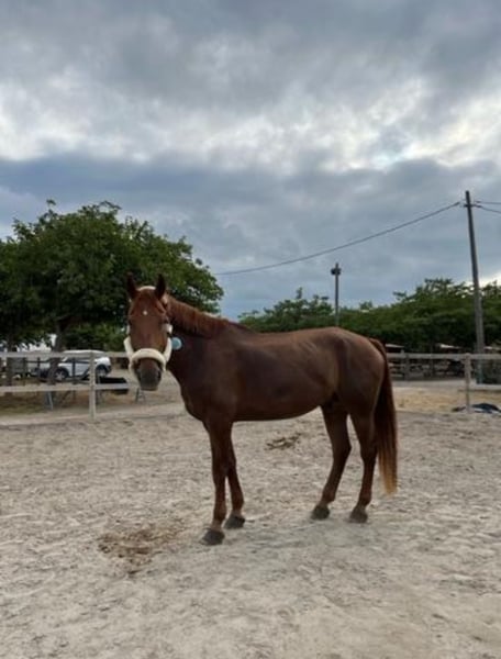 Excellent opportunity to acquire a superb dressage and show jumping horse! We are offering a Selle Français gelding, born in 2013. This impressive chestnut stands at 16.1 hh, making it an ideal partner for riders seeking a versatile and high-quality mount. This horse stands out for his talent in jumping and his excellent temperament, perfect for competitions or for anyone looking for a reliable partner with potential in the equestrian world. For more information and to arrange a visit, please do not hesitate to contact us. Don’t miss the chance to meet this magnificent animal!