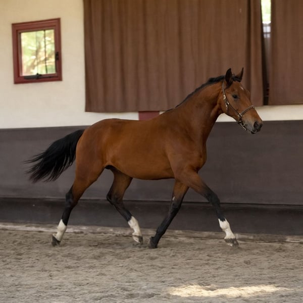 Only One de Masmette, élégant hongre Selle Français de 2 ans né en 2024 et toisant environ 1,70 m, est un jeune cheval de dressage à vendre, destiné à un cavalier souhaitant évoluer avec un cheval gentil, bien dans sa tête et agréable au quotidien, avec un vrai potentiel pour se faire plaisir sur de belles épreuves. Doté d’un modèle harmonieux et fonctionnel, Only One présente une orientation sport équilibrée, avec du cadre, de la taille et une locomotion correcte. Bien construit, il se distingue par son tempérament très proche de l’homme, sa douceur et sa facilité de manipulation, tout en conservant une attitude volontaire et coopérative. Hongre très gentil, il offre un mental sécurisant, ce qui en fait un partenaire particulièrement intéressant pour un cavalier amateur souhaitant évoluer sereinement. Au quotidien, il se montre adorable aux soins, embarque et voyage très facilement, et s’adapte aussi bien à une vie au box avec paddock qu’au pré. Il vit seul sans difficulté. Son comportement général est simple et pratique, facilitant son intégration dans différents environnements. Sur le plan sportif, il est orienté dressage, avec une base saine à poursuivre et à développer selon le projet de son futur cavalier. Sa gentillesse et sa disponibilité mentale laissent entrevoir une évolution progressive et plaisante, sans pression. Only One bénéficie d’un suivi vétérinaire sérieux, avec un bon bilan radios comprenant les pieds, boulets, jarrets et grassets, sans historique de blessures. Côté origines, Only One bénéficie d’une génétique orientée sport et mental, intéressante pour un projet dressage amateur de qualité. Il est issu de Fanomen de Malleret, étalon Oldenbourg reconnu pour transmettre de la taille, du cadre et un bon tempérament, produisant des chevaux sérieux, coopératifs et faciles à utiliser, appréciés pour leur régularité et leur fiabilité dans le travail. Sa mère, Glossy, est par Apache, étalon KWPN de renommée internationale, chef de race majeur du dressage moderne. Apache est reconnu pour apporter de l’expression, de l’équilibre, de la souplesse et une réelle qualité de locomotion, ainsi qu’un mental volontaire, qualités très recherchées pour la formation des chevaux de dressage. Cette combinaison de sang Oldenbourg et KWPN offre un profil harmonieux, associant cadre, fonctionnalité, mental et potentiel sportif, parfaitement adapté à un cavalier amateur souhaitant évoluer avec un cheval agréable et bien né. Pourquoi Only One de Masmette ? Hongre Selle Français bien né Très gentil, proche de l’homme et sécurisant Adorable aux soins, facile au transport Bon bilan radiographique Orientation dressage Idéal pour un amateur souhaitant se faire plaisir avec un cheval fiable et agréable