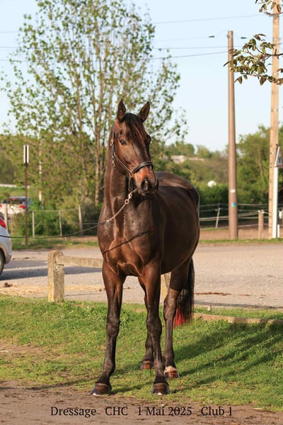We present to you this lovely gelding with prestigious papers, combining elegance, temperament, and potential, ideal for a rider wishing to progress smoothly in dressage. Sire: Emotion de Saint Val (Selle Francais) – Champion of France at 2 and 3 years old, selected for the World Championships for Young Horses before being sold to America. He is himself a son of Don Duan de Hus, a remarkable stallion with an impressive record and known for the quality of his offspring. Dam's sire: Karamel de Lauture (Selle Francais) – Two-time vice-champion of France Pro Elite and performing internationally. He is descended from Gribaldi, an exceptional stallion who excelled at the highest level with Edward Gal and is the father of the legendary Totilas. With his elegant build and charisma, this gelding combines style and practicality. Very gentle, willing, and unfazed, he is easy to handle on a daily basis. He loads and unloads without difficulty, and he is comfortable both alone and in a group. He also jumps well. His gaits show great qualities: Walk: good engagement and nice amplitude Trot: well-paced with a regular rhythm Canter: balanced, with good projection In work, he stands out for his availability and willingness to do well, making him an excellent partner for progressing with reliability and pleasure.
