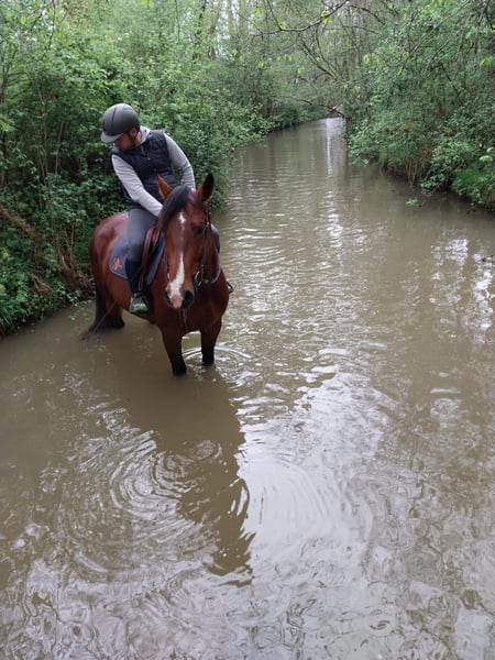Nous vous proposons à la vente un magnifique cheval, idéal pour les passionnés d'équitation. Cheval Classique, facile et pratique. Très gentil, va être castré très prochainement car peu de centre acceptent les entiers (dommage car c'est un amour de cheval, un vrai gentil). Il est inscrit au Livre des Origines constatées et possède d'excellentes origines. Agé de 6 ans, il toise 168 cms. Il est né et à grandi dans notre élevage. Visite vétérinaire Ok ! Prêt de suite pour faire amateur élite ou pro2. Il a de très bon résultats en concours et de nombreux sans-faute ! Force, respect sans rapport de force sont ses principales qualités ! Ce cheval est parfait ! Il a un excellent comportement en main et sous la selle, et s'entend bien avec les autres chevaux. Il est très respectueux des clôtures. En balade, il part seul sans problème et n'a peur de rien, tout comme en concours, ce n'est pas un cheval regardant. N'hésitez pas à me contacter pour plus d'informations ou pour organiser une visite. Contact (son cavalier) M. BOUGOIN au 06.0742.23.20 ou sa propriétaire 06.85.17.02.46 adresse mail : elevagedeshounts@gmail.com