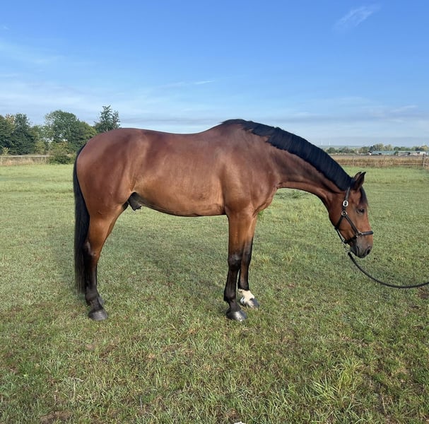 This large-framed gelding impresses with reliability, caution, and rideability. He is pleasant to ride, not spooky, and always shows concentration and willingness to perform – a true sport horse with heart and intelligence. In the show jumping arena, he impresses with ability, overview, and consistency. He has already achieved numerous placements up to M** level – with a remarkable error rate and absolute reliability. 🔹 Sire Nervoso – internationally successful up to 1.60 m 🔹 Dam Diangella by Diamant de Semilly – successful up to 1.35 m 🔹 Granddam Pialotta by Pilot – world-class mare, 4th place WEG 2006, numerous successes up to 1.60 m In the same ownership for nearly 4 years, never sick or lame. Hardness, jumping ability, and willingness to perform are deeply rooted in this lineage. Current X-rays (October 2025) are available. Complete pedigree: https://www.horsetelex.de/horses/pedigree/2327356/instagram A fee of €30 is charged for trial rides to prevent riding tourism.