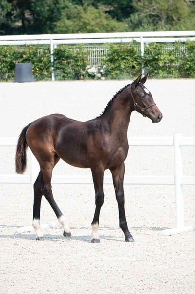 We present to you Pelikan, a superb Selle Français stallion born in 2025, aged 6 months. This promising young colt already displays a modern and harmonious conformation, beautiful movement, and a temperament that is close to humans, with well-balanced bloodlines. Coming from prestigious and athletic lines, Sire: Fynch Hatton (DEU) – A stallion known for passing on amplitude, strength, and elasticity. Dam: Iemesis, by Voltaire (DEU) – A line renowned for producing solid, elegant, and high-performing horses, both in Dressage and Show Jumping. Maternal Grandsire: Vitalis (NLD) – A cornerstone of international breeding, ensuring suppleness, balance, and movement. Pelikan already stands out with his very beautiful gaits: supple, ample, and expressive, with a bouncy trot and an uphill, balanced canter. His chic conformation suggests a large, elegant, and athletic horse. On a daily basis, he shows an exemplary character: very well educated, close to humans, and respectful. Used to regular handling, he will be vaccinated at weaning; farrier care and deworming are up to date. Pelikan has already confirmed his potential by winning the Regional at Haras du Pin with an excellent average of 17.90, proof of his quality and promising future in Dressage. 👉 Veterinary examinations: clinical examination OK. 👉 Location: Normandy (Calvados). 👉 Price: €8,500 An exceptional colt, combining very high-level origins, an appealing conformation, and excellent athletic dispositions, ideal for an investor or an ambitious rider looking to bet on the future.