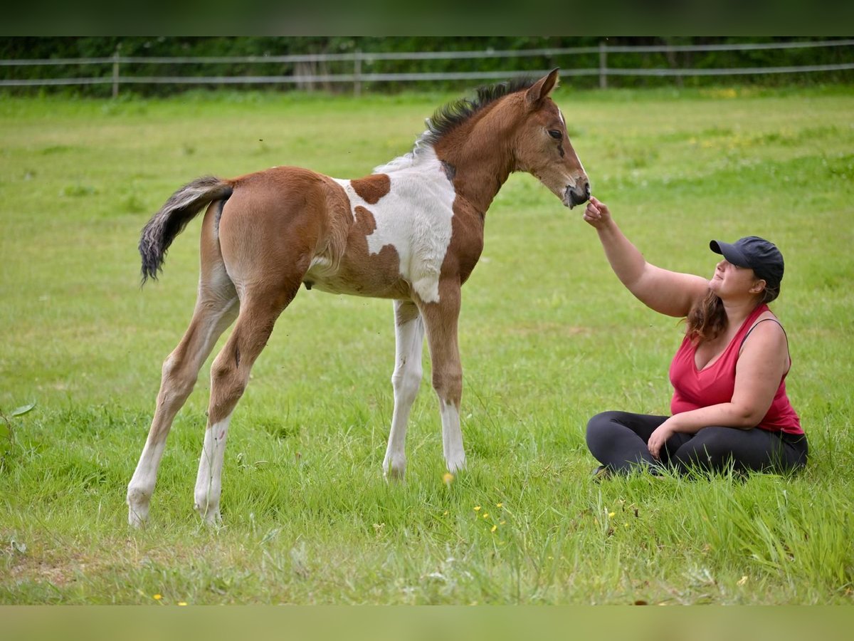 PETITPRINCE KIZOME Schöner Scheckhengst (heterozygoter Farbklecks), französisch registriert, für die Zucht im AES- oder Zuchtbuch zugelassen, mit der Möglichkeit auf eine SF-Registrierung nach Vorführung bei der Modell- und Bewegungsprüfung mit 2 Jahren. Zum attraktiven Preis mit flexiblen Ratenzahlungen bis zur Abholung. Petitprince Kizome ist ein sehr freundlicher Junghengst, der Kuscheln und Streicheleinheiten liebt. Er ist neugierig, sanft und genießt es, im Paddock gebürstet zu werden. Außerdem lässt er sich ruhig mit einem Halfter führen. Er lebt rund um die Uhr mit seiner Mutter und seinen Artgenossen auf der Weide, mit Zugang zu Heu, Gras und einem Futter für Fohlen das ganze Jahr über. Sein Farbklecks ist auffällig: 50 % Weißanteil und braune Flecken, mit schwarzem Mähne und Schweif. Es ist wahrscheinlich, dass er dieses beeindruckende Farbenspiel an die Hälfte seiner Fohlen weitergibt, falls Sie ihn zur Zucht verwenden. Er wird voraussichtlich ca. 1,65 m groß sein, wenn er ausgewachsen ist. Geeignet für Hobby- und Profireiter gleichermaßen. Er ist vor Weihnachten geimpft, entwurmt und bereit für den Transport. Vater: IMPERIAL D’AURICE (Selle Français) Junger, vielversprechender Hengst von FARAQUAO L’ÉVIDENCE SF (Quebracho de Semilly x Breezer KWPN) und aus ÉNIGME DES GRÊLES SF (Wonderboy x Indra des Clos SF). Dieses herausragende Pedigree vereint einige der besten europäischen Springblutlinien: Le Tot de Semilly (Inzucht), Quidam de Revel, Quat’Sous und Capitol. ⭐️ IMPERIAL D’AURICE erreichte: 18/20 für Springen, Kraft und Mut 16/20 für die Konformation bei den Young Horse Evaluations des SF (2- und 3-Jährige) Im 4-Jährigen-Programm absolvierte er 4 fehlerfreie Runden aus 8 (ISO 104) Alle seine bisher vorgestellten Nachkommen bei den SF-Model- & Bewegungsprüfungen wurden zugelassen 💥 Zuchtreferenz: ARKTOS Einer der besten Palomino-Sportpferdehengste Polens, bekannt für seine Vielseitigkeit, Rittigkeit und sein angenehmes Temperament. 📍 Standort: Bretagne, Frankreich 📆 Jetzt reservierbar – flexible Bedingungen möglich.