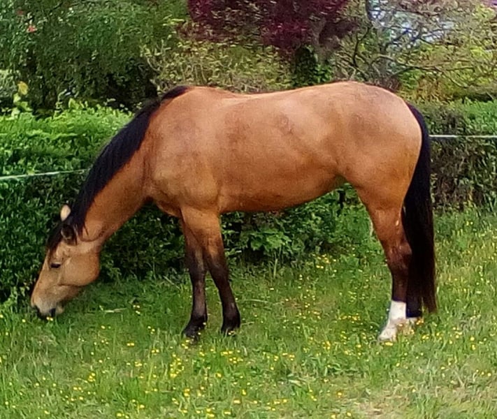 Isabelle mare, born in 2015, 1.69 m, fully registered, dam is a crème breed, sire is a show jumping horse. PSSM1 negative, suitable for leisure riding or breeding. Dominant mare within the herd with a good temperament, very easy to handle.