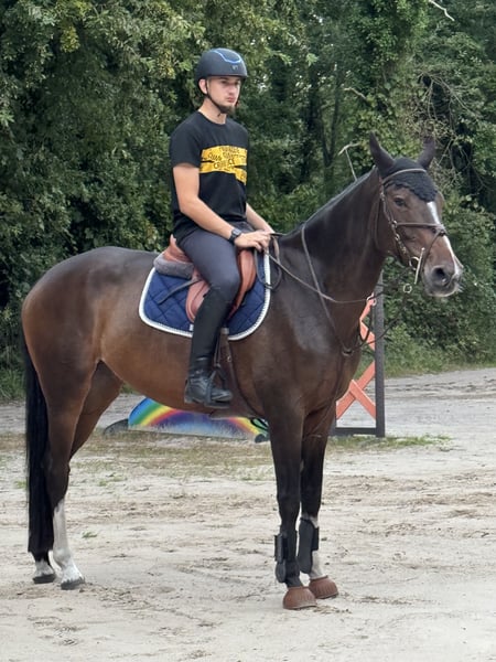 10-jährige Selle Français-Stute Vater: Canturo x Mutter: Tochter von Miguelette Freundliches Pferd mit viel Blut Respektvoll gegenüber der Stange, flexibel, schönes Exterieur ✅ Reitet alleine oder in Begleitung ✅ Geht alleine oder in der Gruppe auf Ausritte ✅ Alle Impfungen aktuell Preis – unter 13.000 € verhandelbar im Rahmen des Vernünftigen bei schnellem Abgang! (Grund: Studium)