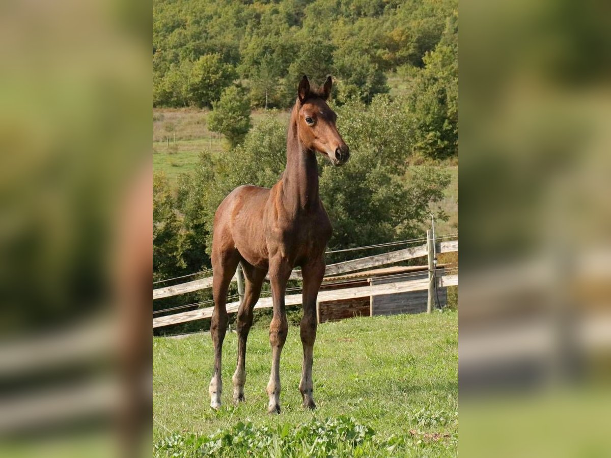 Wir präsentieren Ihnen Pera du Peyron, eine elegante Stute im französischen Reitpferdetyp, geboren am 4. Juli 2025. Sie stammt aus einer besonders durchdachten Kreuzung zweier renommierter Linien, die für ihre Qualität, ihr Wesen und ihr sportliches Potenzial bekannt sind. Mit Chic, Potenzial und Charakter zeigt sie bereits in den ersten Lebensmonaten eine harmonische, gut konstruierte Erscheinung und verfügt über drei sehr gute Grundgangarten, bestätigt durch ihre Bewertung bei France Dressage mit 81 %, verbunden mit einem vielversprechenden abschließenden Kommentar: „Schöne Stute mit Zukunft.“ Ihre detaillierten Noten spiegeln ihr gesamtes Potenzial wider: Trab – 8,4: schöne Elastizität, Schulterfreiheit, sehr gute Cadence Galopp – 8,5: weitläufiger, ausgeglichener Galopp, gute Projektion Schritt – 7,8: weitläufig, regelmäßig, mit gutem Engagement Vater: Idem du Peyron (Hanoveraner – Farrell × Sorento) Aus den besten deutschen Linien stammend, vermittelt Idem du Peyron seiner Nachzucht Bewegungsqualität, Balance und ein modernes, ausgeglichenes Wesen – ideal für den Hochleistungssport im Dressurviereck. Farrell, ihr Vater, ist ein anerkannter Hanoveraner Hengst, Nachkomme des legendären Fürstenball, bekannt für seine Pferde mit außergewöhnlichem Charakter, Flexibilität und Kraft. Farrell hat sich auf internationalen Turnieren, insbesondere bei jungen Pferden, ausgezeichnet, und seine Nachkommen sind heute sehr gefragt wegen ihrer Bewegungsqualität, Lernfähigkeit und Arbeitswilligkeit. Die mütterliche Linie, durch Sorento, bringt Kraft, Ausdruck und einen sehr funktionalen Rücken – wertvolle Eigenschaften für den modernen Dressursport. Sorento ist bekannt für die Zucht leistungsstarker, ausdrucksstarker und ausdauernder Pferde, die häufig bis in den höchsten Turniersport erfolgreich sind. Idem du Peyron vereint somit die Eleganz und Elastizität von Fürstenball mit der Robustheit und Kraft von Sorento, was ein harmonisches Modell, exzellentes Temperament und vielversprechende Grundgangarten vermittelt. Mutter: Electra de Pic (Belgisches Reitpferd – von Solero) In der Tradition der bekannten Trakehner-Linien aufgezogen, die für ihren Chic, ihr Blut und ihre Ausdauer berühmt sind, bringt Electra Feinheit, Intelligenz und ein außergewöhnliches Wesen mit. Ihr Vater, Solero, ist ein Trakehner-Hengst, bekannt für seine bemerkenswerte Dressurfähigkeit, natürliche Flexibilität und Balance. Er hat zahlreiche leistungsstarke Sportpferde hervorgebracht, die für ihre Leichtigkeit im Training und ihre Gebrauchstüchtigkeit geschätzt werden. Die mütterliche Linie von Electra ist ebenfalls geprägt von soliden und zuverlässigen Zuchttieren, die für ihr ausgeglichenes Wesen, ihre Langlebigkeit im Sport und ihre große Arbeitsbereitschaft bekannt sind. Mit ihrem sanften, anhänglichen Temperament ist Pera bereits gut im Umgang: Sie lässt sich die Hufe auskratzen, akzeptiert den Führstrick und genießt das Putzen. Neugierig und menschenbezogen zeigt sie sich auch im Alltag durch ihr vorbildliches Verhalten. Dank ihrer natürlichen Bewegungsqualität, ihrem goldenen Charakter und ihrer erstklassigen Herkunft vereint Pera du Peyron alle Voraussetzungen, um eine vielversprechende Dressurstute für die Zukunft zu werden – sei es im Sport oder in der Zucht. Sie stellt eine lohnende Investition für all jene dar, die auf eine moderne, ausdrucksstarke und leicht zu reitende Nachwuchsstute setzen möchten. Abgabe ab Fohlenalter Vorsteuerabzug möglich Option zur Aufzucht in Pension