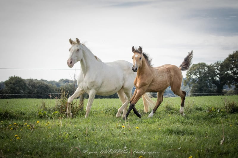 🎀 Pin’up de Quilvala 🎀 Pouliche Selle Français Isabelle née le 13 mai issu du croisement entre : 🧬 Controe ( Contender x Aloube z) et Crème Chantilly GF (Milky Way GF X Attila) Controe , Étalon holsteiner, chef de race(CSI 5* 1m60 / 320000€ de gains / 9e des pères de 4 ans en 2013). Et Crème Chantilly GF, Sublime jument allemande GF Zuchtverband Für Deutsche Pferde E.V de couleur cremello labellisé Selle Français et aux origines 100% sport et dressage issue du célèbre élevage de dressage allemand GF. Une vraie gravure , très chic, bien faite , du sang, de l’équilibre, de la taille et proche de l’homme Elle est disponible à la réservation Paiement échelonné possible jusqu’au sevrage (fin 2025 /début 2026 ) 📍visible en Bretagne ✉️ Plus d’infos en mp