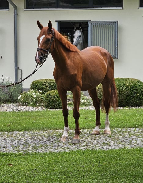 Verkaufe elegante Selle Francais Stute – Perfekte Allrounderin als Freizeitpferd und oder für den kleinen Turniersport. Diese wunderschöne Selle Francais Stute, geboren im Jahr 2019, überzeugt durch ihr edles Erscheinungsbild und ihr angenehmes Temperament. Mit einem Stockmaß von 170 cm bietet sie die ideale Größe. Dabei lässt sie jeden ReiterIn gut aussehen, egal ob auf dem Platz in der Halle oder im Gelände. Jamilla wird im Auftrag direkt vom Züchter verkauft. Sie wuchs in einem großen Herdenverband mit ausreichend Platz und viel Bewegung auf. Sie wurde schonend angeritten und befindet sich derzeit in Ausbildung. Sie ist freundlich, menschenbezogen und lässt sich angenehm reiten. Ob für ausgedehnte Ausritte, Spaziergänge im Gelände oder entspannte Stunden im Stall – diese Stute ist eine zuverlässige Begleiterin. Bei Interesse stehe ich gerne für weitere Informationen und eine Besichtigung zur Verfügung. Kontaktieren Sie mich, um mehr über dieses bezaubernde Pferd zu erfahren!
