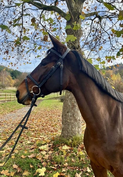 Zum Verkauf steht eine eine schöne Selle Française Stute mit exzellenter Abstammung. Die Stute wurde schonend ausgebildet– viel Ausreiten, solide Bodenarbeit sowie sorgfältige Handarbeit und Horsemanship prägen ihren Werdegang. Die Stute stammt aus einer Vielseitigkeits-Hochleistungszucht: Ihre Großmutter war international in der Vielseitigkeit erfolgreich, die Mutter ging siebenjährig erfolgreich L und war anschließend bis ins hohe Alter von 25 Jahren in der Zucht, um diese wertvolle Linie weiterzuführen. Viele von „Hedi’s“ zahlreichen Geschwistern sind im Springsport bis S-Niveau erfolgreich unterwegs – ein pedigree, das sowohl sportlich als auch züchterisch beeindruckt. Die Stute wurde u.a. aufgrund Ihrer guten Röntgenbilder von Hals- und Rücken gekauft und ihrer idealen Hufe und symmetrischen Zähne zur Zucht eingesetzt. 2024 hat sie ein gesundes, sehr typvolles und prämiertes Stutfohlen zur Welt gebracht. Auch für die weitere Zucht ist sie daher äußerst interessant: korrekt gebaut, hervorragend im Interieur und ausdrucksstark im Auftreten. Sie zeigt sich in der Herde äußerst verträglich, wobei täglicher Auslauf für ihr Wohlbefinden wichtig ist. Im täglichen Umgang präsentiert sie sich freundlich, fein, aufmerksam und gut erzogen. Unter dem Sattel ist sie rittig, lernbereit und überzeugt mit einem klaren Arbeitswillen. Aufgrund ihres bisherigen Einsatzes in der Zucht sowie zeitlicher Prioritäten wurde sie bislang noch nicht turniermäßig vorgestellt. Geritten wird sie aktuell von Nina Schultes, LK 1 Vielseitigkeit, wodurch sie weiterhin professionell gefördert wird.