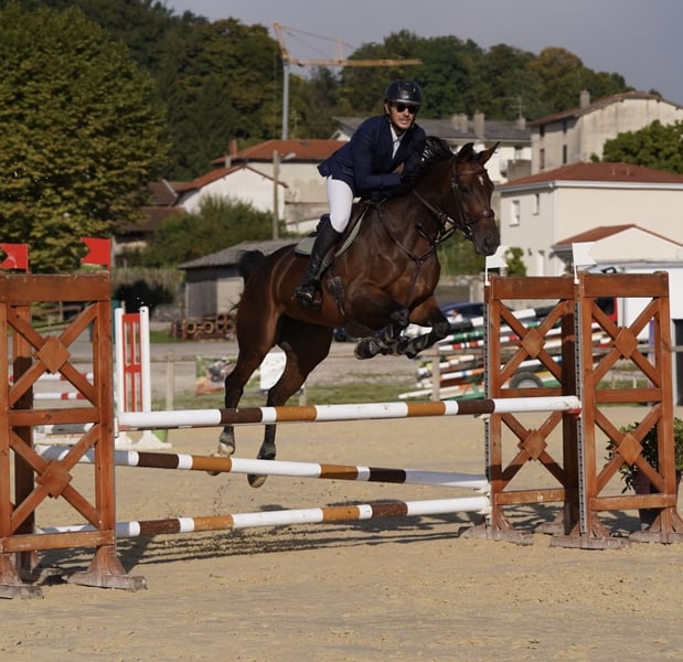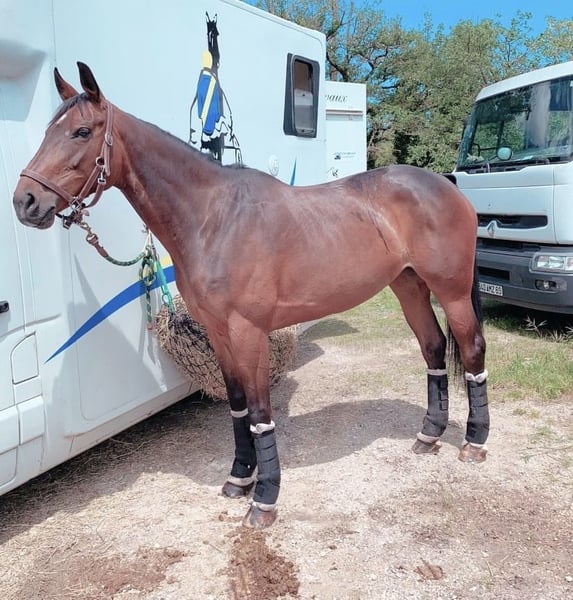 À VENDRE – Jument Selle Français 8 ans – 1m72 Super jument avec un mental exceptionnel et de très belles allures, idéale pour amateur qui débute ou pour confirmé qui veut évoluer en CCE ou Hunter. - 8 ans – 1m72 - Origines Selle Français - Actuellement tourne en Amat 4-3-2 en CCE - CSO et Hunter style. - Ferrure, transport, tonte : RAS - Part seul en ballade. - Très facile au quotidien, courageuse et volontaire. Ne s’arrête pas sur les barres. - TAP régulier : longe et longue rênes. - Beaucoup de potentiel encore à développer. Actuellement vie au box/paddock mais peut vivre au pré. Par chaque année en vacance au pré en troupeau et tous ce passe sans encombre. Visite vétérinaire complète : radio dos, pieds, articulations (juin 2023 lors de l’achat). Prise de sang négative piroplasmose (octobre 2025). Coproscopie faite en octobre 2025 : RAS. Dernière visite dentiste date du 8 octobre 2025 : RAS Dernière visite ostheopate date du fin juillet 2025 : RAS Suivi veterinaire regilier avec comptes rendus. L'ensemble des données et des comptes rendues vétérinaires peuvent être transmis uniquement après un essai concluant. Situé en région Rhône Alpes : 69 Transport possible en region Rhône Alpes (sous conditions). Plus d’infos en message privé.