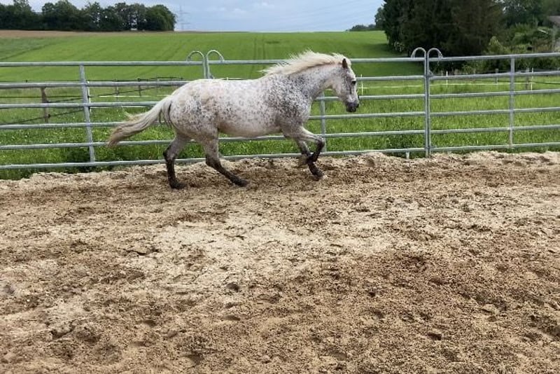 Send Tigerscheck mare with an ideal height of 1.55 m, seeking a new home due to retirement from competitive riding. The 9-year-old mare is eager to learn, willing to work, and motivated. Her previous owners rode her in lead-rein classes up to A-Dressage and she was placed in competitions, as well as in E-Jumping and eventing. She is confident going out alone in the field. Overall, she is friendly and uncomplicated in handling. Maggie is a sensitive horse and requires a confident, experienced rider. She is very social and compatible with other horses, making her also suitable as a companion horse. Maggie has equine asthma and needs a dust-free, well-ventilated environment. An open stable or a paddock box with plenty of turnout and fresh air would be ideal. She has been regularly dewormed, vaccinated (tetanus, influenza), and presented to the farrier every six weeks. She is barefoot. Her teeth were also floated in August (dental record available). She is easy to load and stands well for the farrier. Currently, Maggie is not in training due to health reasons on my part. The price will increase with further training and education. Suitable tack can be purchased additionally.
