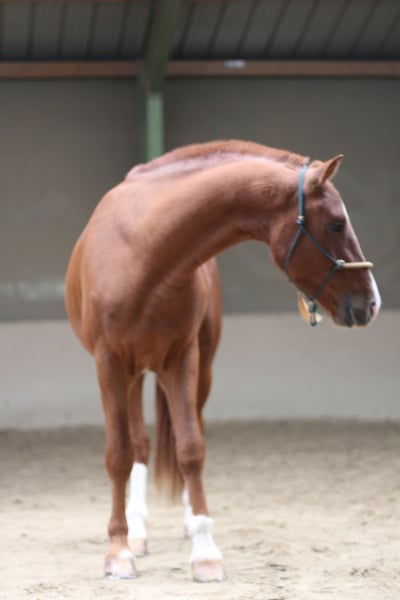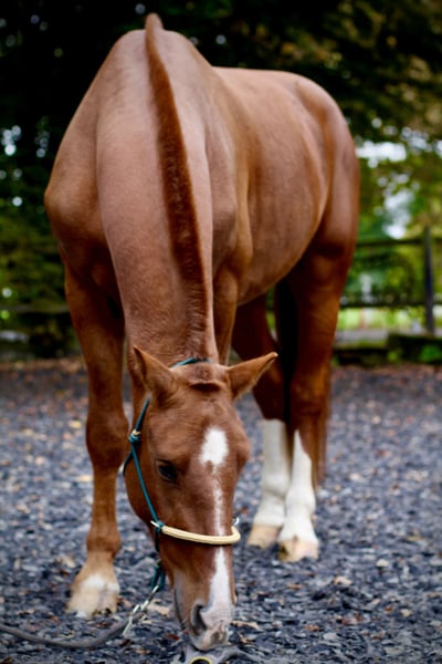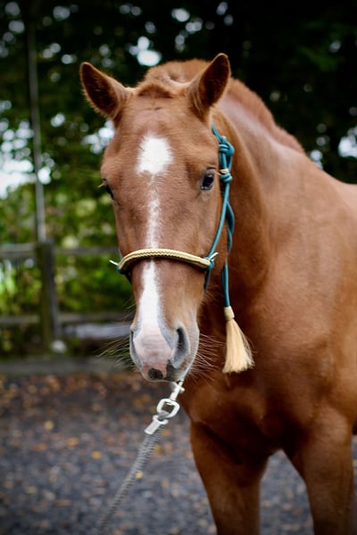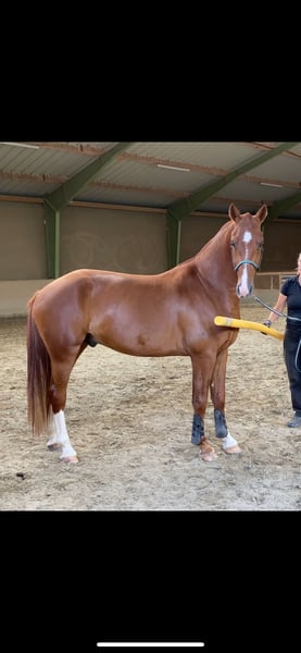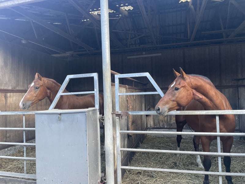 “Hasard des Oués“ oder kurz und liebevoll “Hasi“ genannt. Mit seinen aktuell 164cm vereint er die Sportlichkeit eines Warmblüters mit dem stabilen und freundlichen Charakter eines Freibergers. Hasi hat im Juli diesen Jahres seinen Feldtest in der Schweiz mit den Noten Exterieur: 8/7/9 Fahren: 8.29 Reiten: 7.60 absolviert. Er ist Ein-und Zweispännig gefahren, grundausgebildet unter dem Sattel und hat sich im Gelände stets sicher und zuverlässig gezeigt. Ob alleine im Gelände oder als Gruppe auch mit Hunden geht er gerne raus. Auch beim Longieren, Freilauf, ob ausgebunden oder nicht und an der Hand hat er sich nie negativ benommen. Hasi haben wir als ein sehr personenbezogenes Pferd kennengelernt. Bei Fremdreitern ist er erst einmal etwas unsicher, was er grundsätzlich durch anhalten und nachfragen statt durch wegrennen zeigt. Mit ein wenig Vertrauen zeigt er tolle Grundgangarten und deutlichen Lernwillen. Er ist sehr verschmust, achtet aber stets darauf einen nicht anzurempeln. Seine Tierärztliche Voruntersuchung ist wie erwartet ohne Befund. Mit seinen 3,5 Jahren ist er bereits ein wundervoller Begleiter der noch viel Potential in sich trägt. Um Reittourismus keine Chance zu geben müssen wir leider eine kleine Gebühr für das Probereiten berechnen. Selbstverständlich wird diese beim Kauf angerechnet.
