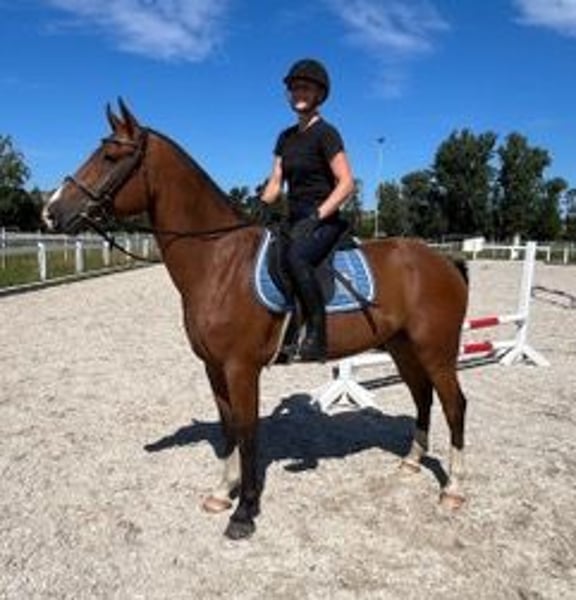 **Te koop: Freiberger ruin** Te koop staat een prachtige Freiberger ruin, geboren in 2022. Met een schofthoogte van 156 cm is hij de ideale partner voor dressuur- en vrijetijdsactiviteiten. **Kenmerken:** - Ras: Freiberger - Geslacht: Ruin - Geboortejaar: 2022 - Kleur: Bruin - Schofthoogte: 156 cm - Geschiktheid: Dressuur Deze charmante ruin overtuigt niet alleen door zijn aantrekkelijke uiterlijk, maar ook door zijn vriendelijke aard en leergierigheid. Hij is goed opgevoed en heeft al eerste ervaringen in de dressuur opgedaan. Hij is geschikt voor zowel ervaren ruiters als ambitieuze beginners die plezier hebben in het werken met een getalenteerd paard. Bij interesse of verdere vragen sta ik u graag ter beschikking. Bezichtigingen en proefrijden zijn in overleg mogelijk. Wij kijken uit naar uw bericht!