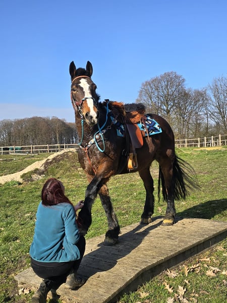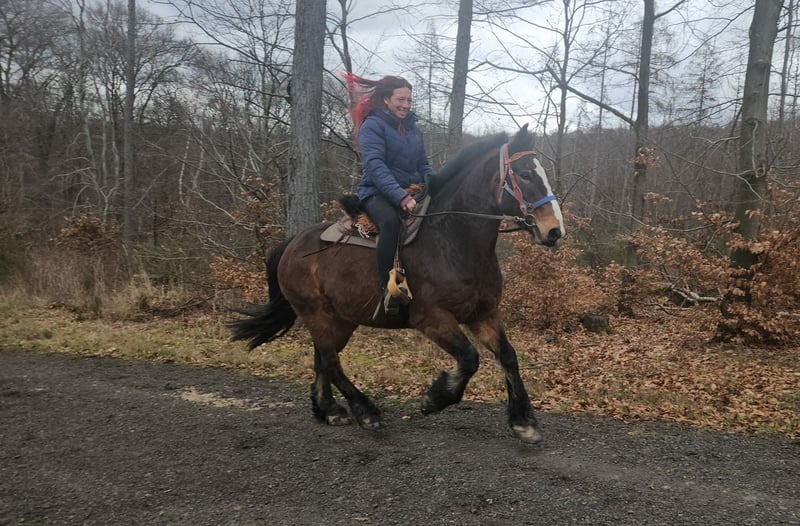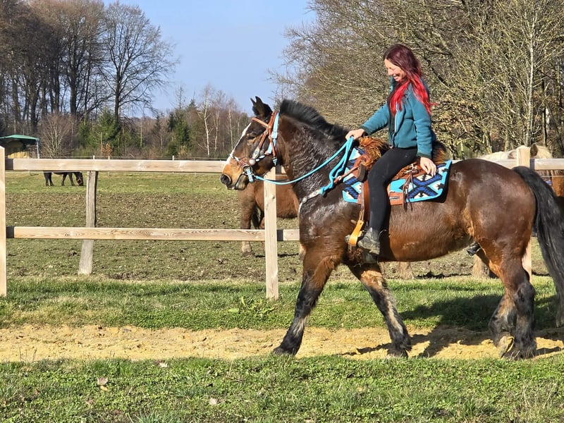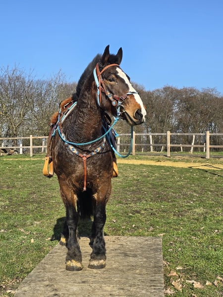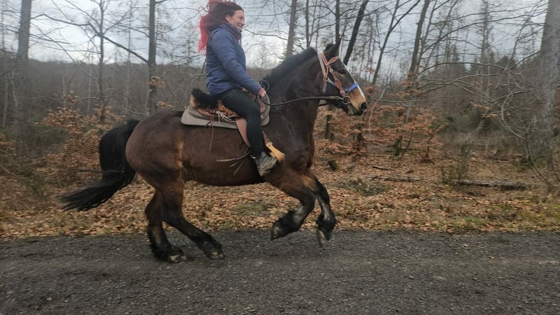 Kräftiger Freiberger–Ardenner Mix Wallach – brav geritten & gefahren Alter: 9 Jahre 25.4.2017 Stockmaß: ca. 157 cm Preis: 6900,- AKU: vorhanden ✨ Beschreibung: Dieser 9-jährige Freiberger–Ardenner Mix Wallach überzeugt mit seinem kräftigen, stabilen Körperbau und seinem absolut ausgeglichenen Charakter. Er ist ein zuverlässiger Partner im täglichen Umgang – freundlich, ruhig und unkompliziert im Stall sowie beim Putzen und Führen. Unter dem Sattel zeigt er sich brav und angenehm zu reiten. Er geht fleißig vorwärts, bleibt dabei stets kontrollierbar und vermittelt seinem Reiter ein sicheres Gefühl. Auch gefahren ist er und kennt die Arbeit vor der Kutsche. Dabei präsentiert er sich zuverlässig,und arbeitswillig. Ein vielseitiger Freizeitpartner mit Substanz – ideal für Reiterinnen und Reiter, die ein kräftiges, gutmütiges Pferd suchen. Geeignet für: Freizeitreiter, Wiedereinsteiger oder Fahrer, die einen stabil gebauten, geländesicheren und zuverlässigen Wallach suchen. Auch für kräftigere Reiter bestens geeignet. Unsere Pferde werden regelmäßig: – entwurmt – vom Schmied betreut – osteopathisch kontrolliert Hofladen: Westernsättel, Trensen & Zubehör Transport sowie passendes Equipment auf Wunsch günstig organisierbar Unser Service: ✅ 3 Monate Umtauschrecht ✅ Proberitt: 35 €, jedes weitere Pferd 25 € (beim Kauf am selben Tag angerechnet) ✅ 100 € Sofort-Rabatt bei Abholung oder Transport am gleichen Tag ✅ Persönliche & ehrliche Beratung Anfragen bitte ausschließlich telefonisch: 0171 – 4001968 Erreichbar täglich von 8–20 Uhr ⚠️ Keine E-Mail oder WhatsApp ⚠️ Alle Angaben ohne Gewähr