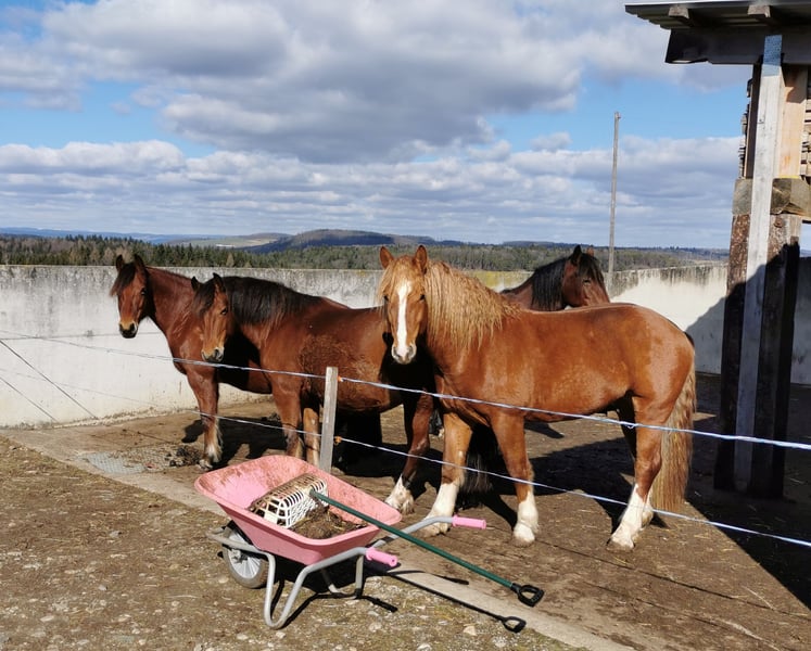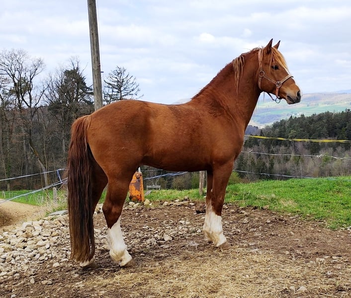 Elroy ist geritten, gefahren und kennt etwas Holsschleppen. Er ist immer topmotiviert dabei, geht gern ins Gelände und ist verkehrssicher. Er ist immer zumindest über Tag in der Herde gestanden und Herdenanschluss ist für ihn auch wichtig. Er ist sehr sozial zu Mensch und Pferd. Er war bis zum Frühling 2025 noch Hengst, zeigt aber keinerlei Hengstallüren. Auch auf rossende Stuten sitzt er nicht mehr auf. Aufgrund der Gänge ist er weniger für englische Dressur geeignet, aber dafür für das klassische oder barocke reiten. Der Schatz wird nur an Bestplatz verkauft. Er steht in Zeihen in der Schweiz. Bei interesse melden bei Doris Walter (0041) 076 307 55 62