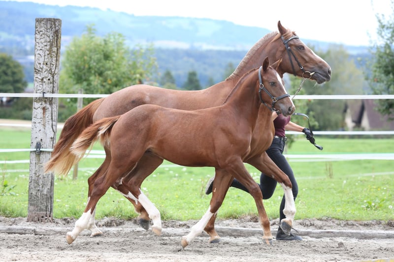 Zum Verkauf steht ein vielversprechender Freiberger Hengst, geboren im Jahr 2025. Dieser wunderschöne Fuchs überzeugt nicht nur durch sein auffälliges Erscheinungsbild, sondern auch durch sein sanftes Wesen und seine ausgeglichene Art. Fohlenschau Noten 7 6 7 Bei Interesse oder für weitere Informationen stehe ich Ihnen gerne zur Verfügung. Lassen Sie sich diese Gelegenheit nicht entgehen, einen tollen Freizeitpartner zu finden! Barbara