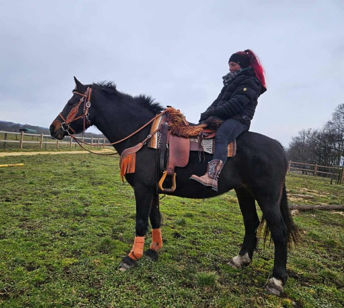 Freibergerstute EVELIEN mit Papiere , E-Paß u. AKU dabei . * wird ende Feb. 10J. * hat ein stm. ca. 1,60 * 7500,- ✔️ Freundlicher und umgänglicher Charakter – ideal für ambitionierte Freizeitreiter ✔️ Gut erzogen im Umgang – entspannt beim Putzen, Führen und Satteln ✔️ Ein echter Hingucker *Unsere Ponys & Pferde:* Alle unsere Tiere sind regelmäßig entwurmt, dem Hufschmied vorgestellt und bei Bedarf osteopathisch behandelt. Wir legen großen Wert auf eine artgerechte Haltung und ein faires Miteinander. *Zusätzliche Informationen:* Wir möchten Ihnen den Kauf Ihres Traumpferdes so angenehm wie möglich machen! Zubehör und Transport können wir gerne organisieren. In unserem Hofladen gibt es außerdem eine große Auswahl an gebrauchten Marken-Westernsätteln sowie weiteres Zubehör wie Trensen, Halfter und mehr. *Unser Service für Sie:* Damit Sie Evelien in Ruhe kennenlernen können, bieten wir *Proberitte für 35 Euro* an. Möchten Sie weitere Pferde testen, kostet jeder zusätzliche Ritt nur 25 Euro. Sie können reiten, sich vorreiten lassen, spazieren gehen oder einfach Zeit mit ihr verbringen. Beim Kauf wird dieser Betrag selbstverständlich verrechnet. *Besonderheiten für unsere Kunden:* - Bei sofortiger Abholung oder einem Transport am gleichen Tag bedanken wir uns mit *einem Nachlass von 100 Euro.* - Wir begleiten Sie mit einem transparenten Proberitt durch den gesamten Verkaufsprozess, damit Sie das perfekte Pferd für sich finden. *Wichtige Hinweise:* - Alle Bilder und Bildrechte gehören ausschließlich uns; eine Fremdnutzung ist nicht gestattet. - Da es sich um ein lebendes Tier handelt, basieren unsere Angaben auf den Eindrücken der Betreuer und stellen keine zugesicherten Eigenschaften