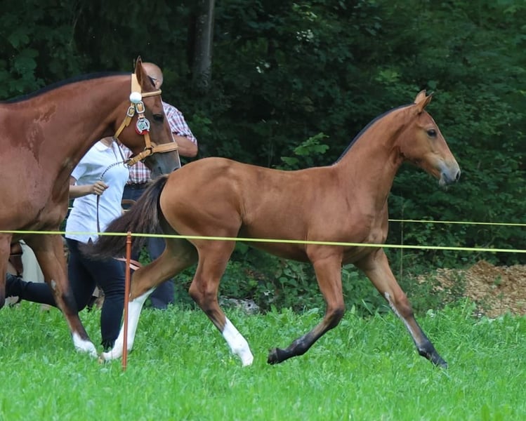 Sidney du Mont-Girod Je mets en vente ma jeune jument Fribourgeoise. Née en février 2023, elle est arrivée chez nous en octobre 2023, avec cinq autres poulains de la même année originaires de Suisse. Depuis lors, elle a été élevée dans un groupe mixte, ce qui lui confère un tempérament très sociable et équilibré. Dès son poulinage, nos petits ont toujours découvert de nouvelles choses pour pouvoir par la suite évoluer en toute confiance et sérénité dans le monde. Sidney se montre au quotidien parfaitement amicale, curieuse et facile à gérer. Elle a déjà été longée, a joyeusement porté tout type d’équipement (bandages, selle, longe, mors, etc.), connaît l’entraînement à la détente et aime énormément aller en manège. Elle se comporte comme une grande même chez le maréchal-ferrant. Elle a été notée lors de la foire aux poulains en Suisse avec la note de : 7/7/7. Une jument avec de bonnes foundations, un esprit clair et beaucoup de potentiel pour l’avenir – que ce soit pour le loisir, le terrain, la reproduction, le western ou plus tard en compétition. Estimation de la taille finale : 1,57 m.