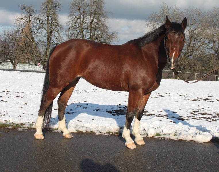 Freibergerstute, bald 4 jährig, 150 cm gross Diese freundliche Freibergerstute ist immer gut gelaunt und motiviert bei allem, was man mit ihr anstellt... Sie ist super zum ausreiten - alleine sowie auch in der Gruppe. motiviert und brav an der Kutsche. top verkehrssicher und zuverlässig. Sie ist ein tolles Familienpferd - Kinder können sie führen, putzen, selber zum reiten bereit machen. Kann auch als Handpferd ins Gelände mitgenommen werden. Sie wird auch an der Longe sowie auf dem Sandplatz gearbeitet - dies macht sie sehr gut: ist talentiert sowie sehr rittig und bringt eine tolle Grundhaltung mit. Mit anderen Pferden und Ponys versteht sie sich problemlos, sie ist sehr sozial und kommt auch in einer grossen Herde klar. Dadurch wäre auch Offenstallhaltung kein Problem. Sie ist auf einem lebhaften Landwirtschaftsbetrieb mit Maschinen, grossen Traktoren, spielenden Kindern zuhause. Sehr gerne darf sie besichtigt, kennengelernt sowie ausprobiert werden.