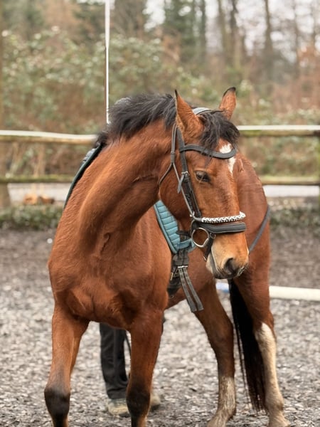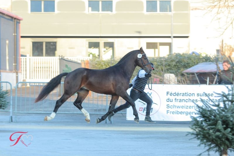 Sidney du Mont-Girod Ich biete hier meine junge Freiberger Stute zum Verkauf an. Geboren ist sie im Februar 2023 und kam im Oktober 2023 mit fünf gleichaltrigen aus der Schweiz zu uns an den Hof. Sie wurde seitdem in einer gemischten Herde großgezogen, was sie sehr sozial und ausgeglichen macht. Von Fohlen an haben unsere kleinen stets neue Dinge kennen gelernt, um später absolut gelassen und sicher durch die Welt gehen zu können. Sidney zeigt sich im täglichen Umgang absolut freundlich, neugierig und unkompliziert. Sie ist bereits Longiert, hat freudig jede Form von Ausrüstung getragen (Gamaschen, Sattel, Longiergurt, Trense, etc.) kennt Gelassenheitstraining, Bodenarbeit, Doppellonge und geht unglaublich gerne in die Führanlage. Sidney ist nun so weit gearbeitet, dass sie zeitnah eingeritten werden kann. Benotet wurde sie bei der Fohlenschau in der Schweiz mit: 7/7/7 Ein Pferd mit feinem Fundament, klarem Kopf und viel Potenzial für die Zukunft – egal ob Freizeit, Gelände, Zucht, Western oder später im Sport. Geschätztes Endmaß 1,57m.