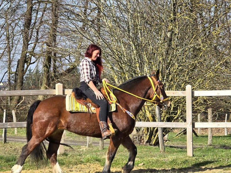 Cheval de Freiberger fiable – doux et polyvalent DEESSE est un véritable cheval de rêve ! Âge : 8 ans Taille : environ 1,54 m (16.1 hh) Prix : 7 900 € AKU : disponible ✨ Description : Cette jument de Freiberger de 8 ans séduit par son tempérament équilibré, calme et sa manière agréable au quotidien. Elle est amicale, attentive et totalement facile à gérer au box, au pansage et à la longe. Sous la selle, elle se montre fiable et agréable à monter. Elle travaille avec motivation sur la carrière et est particulièrement une excellente partenaire en extérieur – détendue, sûre sur ses appuis et toujours manipulable. De plus, elle a été conduite en attelage et connaît le travail devant la voiture. Là aussi, elle se montre sage et sûre. Une partenaire de loisir sincère et polyvalente, qui donne à son cavalier une sensation de confiance constante. Convient pour : Les cavaliers de loisir recherchant une jument équilibrée, sûre en terrain varié et déjà conduite en attelage. Idéale pour des sorties détendues, le travail en manège et le loisir en voiture. Nos chevaux sont régulièrement : – vermifugés – suivis par le maréchal-ferrant – contrôlés osteopathiquement Écurie : Selles western, brideries & accessoires Transport et équipement adapté disponibles à prix avantageux sur demande Notre service : ✅ Droit d’échange de 3 mois ✅ Essai : 35 €, chaque cheval supplémentaire 25 € (à déduire lors de l’achat le jour même) ✅ 100 € de remise immédiate lors de la récupération ou du transport le même jour ✅ Conseils personnels et sincères Pour toute demande, uniquement par téléphone : 0171 – 4001968 Disponible tous les jours de 8h à 20h ⚠️ Pas d’e-mails ni WhatsApp ⚠️ Toutes les informations sans garantie