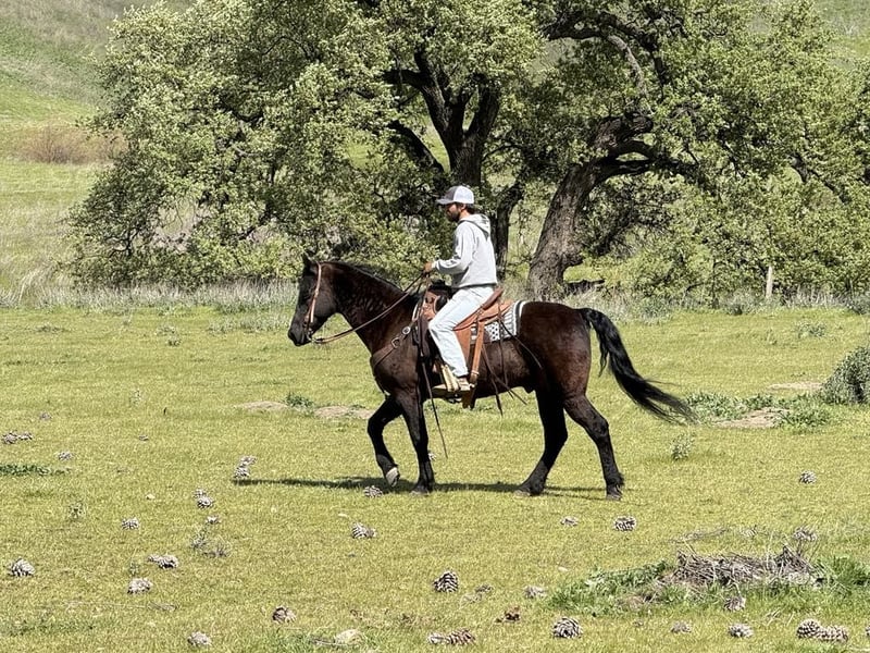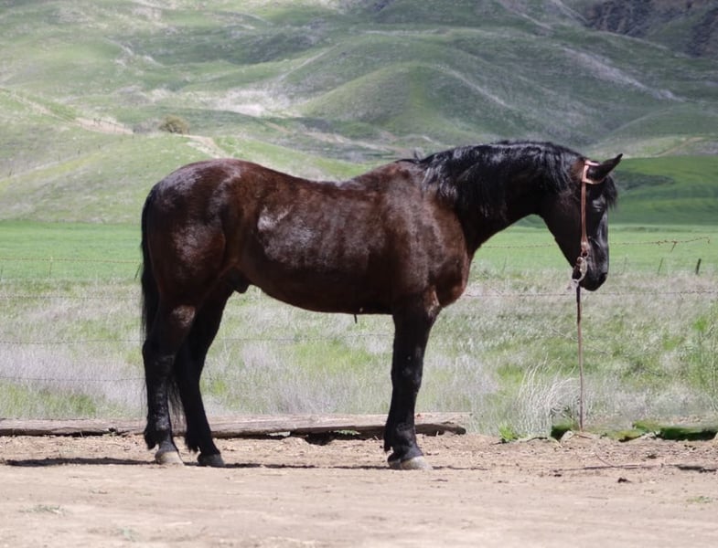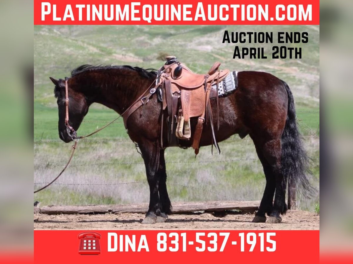 ONLINE AUCTION Place your bids at www.PlatinumEquineAuction.com Starting Bid $3500 Auction ends April 20th, 2025 Need a new saddle? Check out White Rock Saddles on our website or Facebook! Blackjack – The Ultimate Gentlemen, you don’t see many like him. He’s an 11-year-old Friesian quarter cross standing at a solid 15 hands. This guy is the perfect mix of finesse and gentleness, and let me tell you, he’s the most laid-back dude you could ever meet. You can throw anything at him, and he won’t even blink! He’s an absolute dream to ride, super easygoing, and perfect for anyone, whether you’re a newbie or a seasoned rider. He carries himself beautifully and moves like a pro. He picks up all his leads effortlessly and has a smooth-as-glass ride. Plus, he’s got a nice stop and backs up like a champ. Riding him is just a pleasure! He rides collected and has the perfect one hand neck rein. Blackjack’s done everything from cattle work to trail obstacles. He’s seen it all: bridges, flags, tires, tarps – you name it! On the trail, he’s got this calm easy going vibe that makes him shine. No surprises for this guy; he’s tackled all kinds of terrain, wildlife, downed trees, and thick brush like a pro. If you’re looking for a horse that anyone can ride, Blackjack is your guy. You can ride him bareback in halter and crawl all over him he’s a saint. He’s even been down busy streets with cars zooming by, and he just strolls along like it’s no big deal. He ties, clips, and bathes like a champ, and he just loves hanging out with his humans. He loads and hauls well, is great for the farrier, and comes right to you when you call. Honestly, if you’re in the market for a safe, trustworthy, and all-around gentleman of a horse, you’ve got to check out Blackjack. If you want more info, contact Dina at Longhorn Ranch at 831-537-1915. We are located in Paicines, CA. ONLINE AUCTION Place your bids at www.PlatinumEquineAuction.com Starting Bid $3500 Auction ends April 20th, 2025 Need a new saddle? Check out White Rock Saddles on our website or Facebook!