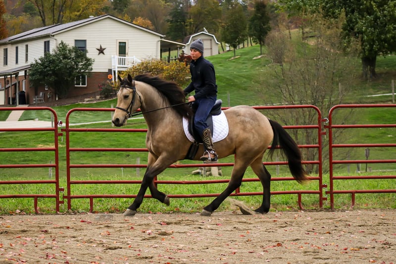 ⚜️ 𝓽𝓱𝓮 𝐇𝐨𝐫𝐬𝐞𝐦𝐚𝐧'𝐬 𝓢𝓱𝓸𝔀𝓬𝓪𝓼𝓮⚜️ Happening now thru MONDAY | DECEMBER 1st - Available EXCLUSIVELY on HorseBid's website! For more details and to register visit: www.Horsebid.com CONSIGNOR CONTACT: Trickling Brook Farm 330-390-3160 LOCATION: Sugarcreek, OH BREED: Friesian x Quarter Horse REGISTERED: Yes REGISTERED NAME: Maple Creek Lyle COLOR: Buckskin HEIGHT: 15.2 AGE: 4 GENDER: Gelding Lyle is a 4 yr old Buckskin Friesian x Quarter Horse cross gelding standing 15.2 hh tall. he was bought as a weanling and has been on the same farm for the last 3 yrs. Check this guy out! He’s a great color, size, and build. He is going well English or Western and rides walk, trot, canter under saddle. He responds to the leg and rides in a snaffle or a curb bit. Lyle is comfortable pushing cows and riding around the trails. He goes out alone and crosses logs, creeks, and more! He leads, loads, ties, and stands great for the blacksmith and saddling. Lyle is selling as a prospect and is ready to begin training for a specialized discipline. He can go any which way someone may like, but might be most suited for Working Equitation, trail riding, dressage, and more. He has a great temperament and wants to connect to his rider. He comes when called and is a pleasure to be around! Anyone is welcome to come check him out! Call 330-390-3160 FMI