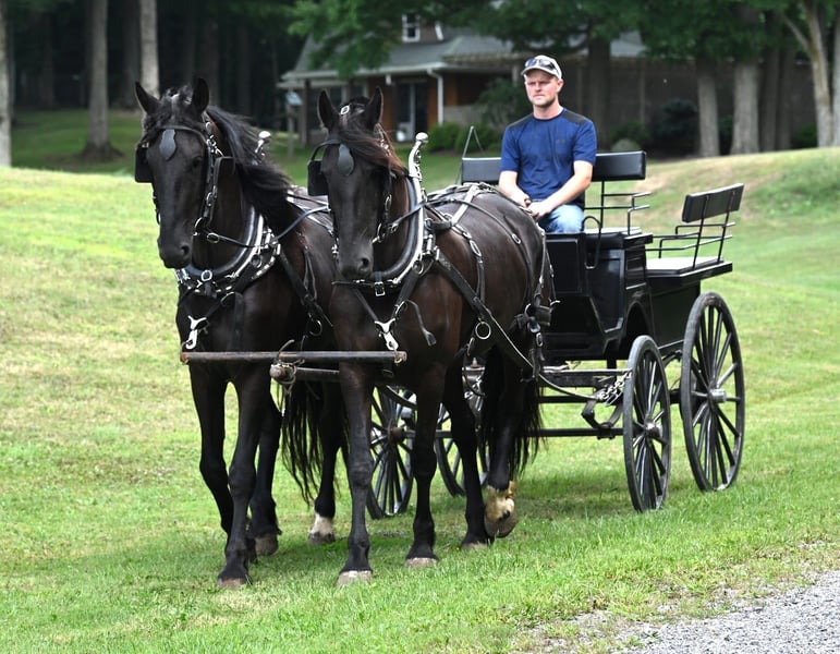 🌟𝑨𝒑𝒓𝒊𝒍 𝐀𝐋𝐋 𝐒𝐓𝐀𝐑 𝐋𝐈𝐍𝐄𝐔𝐏🌟 Happening now thru MONDAY | APRIL 6th - Available EXCLUSIVELY on HorseBid's website! For more details and to register visit: www.Horsebid.com CONSIGNOR CONTACT: Wolcotts Versatility Horses and Training 585-734-0169 LOCATION: Warsaw, NY BREED: Friesian cross REGISTERED: Yes REGISTERED NAME: Clyde COLOR: Black HEIGHT: 16.3 AGE: 4 GENDER: Gelding **Clyde comes with a 2-week guarantee ** Clyde is a registered 4-year-old Shire/Friesian cross gelding standing 16.3h tall. He has a nice walk, trot, canter, and moves off your leg with ease. He is soft in the face and always wants to please his rider. We have used Clyde for various events on the farm, such as trail rides, lessons, driving, and on our obstacle course; he does it all. Clyde has many miles out on the trail and in the arena. He will lope a nice circle in the arena and then ride out alone or with a group on a trial ride, crossing water, logs, and ditches with no problem. Clyde is not only great at riding, but he also drives! His steady nature and willingness to learn new skills make him a reliable partner for any endeavor. Clyde is versatile and easy-going. Clyde is easy to load into a trailer and unloads like an old seasoned horse. He has excellent ground manners, stands quietly tied, and is a true gentleman for the farrier and vet. Clyde is a reliable, well-rounded horse that everyone can enjoy. Clyde sells 100% sound with no vices. PPE is welcomed at the potential buyer's expense. Contact Dayton at 585-734-0169 for more information on Clyde