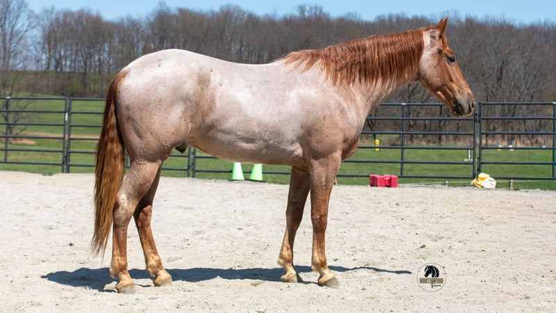 ▪️▫️◾️𝐭𝐡𝐞 𝑴𝒂𝒚 𝐒𝐞𝐥𝐞𝐜𝐭◾️▫️▪️ Happening now thru MONDAY | MAY 4th - Available EXCLUSIVELY on HorseBid's website! For more details and to register visit: www.Horsebid.com CONSIGNOR CONTACT: North Wind Farm 330-473-3521 LOCATION: Fredericksburg, OH BREED: Friesian cross REGISTERED: No COLOR: Red roan HEIGHT: 15.3 AGE: 4 GENDER: Gelding Rogan is a 4 yr old red roan Friesan/quarter horse gelding standing at 15.3hh. Rogan is well broke to ride both English and western! He has a puppy dog personality and adores attention! He Enjoys turn out and can be out in the pasture with other horses! He is easy to catch in the pasture! Rogan will stand nicely for grooming, tackling up, bathes, and getting his feet done! He has good ground manners and is very respectful! Rogan rides very well in the arena, he will pick up both leads, he stops easily, and backs up. He has a flowly walk, trot, canter. His canter is a dream! Rogan will neck rein and direct rein. He moves off of leg pressure as well. He has been started on jumps and absolutely loves it! He is confident going up to the jump and always gives 110% effort. He would be suitable for a begginer or novice jumper, he takes care of his rider! Rogan will also trail ride! He goes through creeks and mud! He is surefooted in the hills and has also been rode on the road! Rogan is used to being around dogs and atvs. He will also go through the obstacles! Rogan is a very well mannered gelding looking for his forever home!
