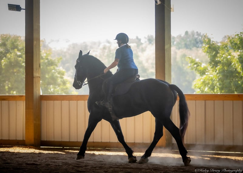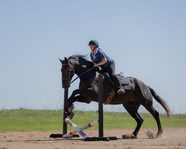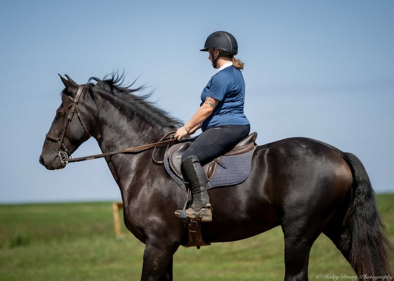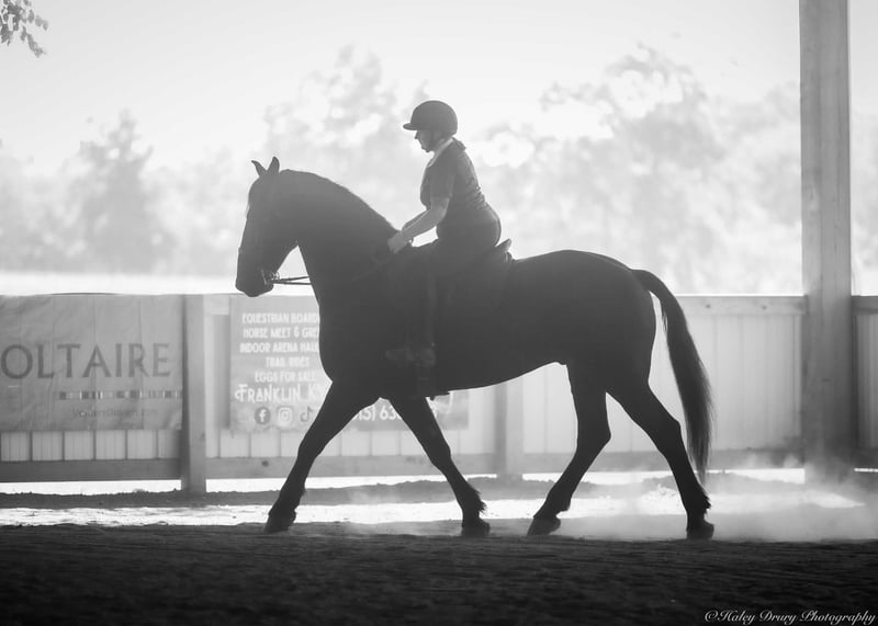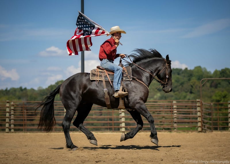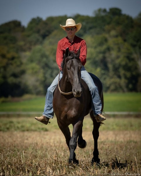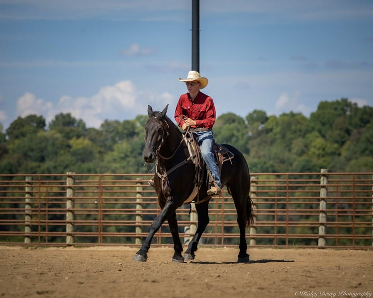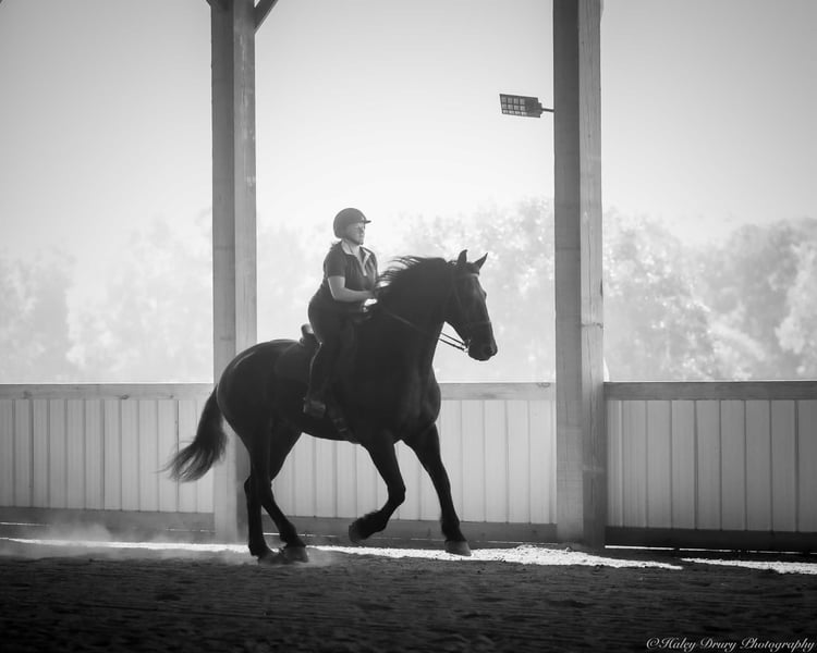 ♦️ 𝐭𝐡𝐞 𝐀𝐌𝐄𝐑𝐈𝐂𝐀𝐍 𝓕𝓪𝓵𝓵 𝓒𝓵𝓪𝓼𝓼𝓲𝓬 ♦️ Happening now thru MONDAY | OCTOBER 20th - Available EXCLUSIVELY on HorseBid's website! For more details and to register visit: www.Horsebid.com CONSIGNOR CONTACT: Jamie Thomason 270-772-1706 LOCATION: Auburn, KY BREED: Friesian Cross REGISTERED: Yes REGISTERED NAME: BIRCH FARM TED COLOR: Black HEIGHT: 16.3 AGE: 4 GENDER: Gelding The definition of equine luxury — a striking, jet-black, gelding with the size, style, and presence to turn heads! ROYCE is a 4 yr old, 1/2 Friesian, 1/4 Morgan, 1/4 Percheron Gelding registered in the Friesian Heritage Horse association, standing at 16.3 hands tall. Royce walk-trot-canters both directions, picks up the correct leads. Transitions smoothly, moves laterally, light in the bridle, & stops from your seat or a simple “whoa”. Royce is always willing, eager to learn, & forgiving making him suitable for a variety of riders and disciplines. No saddle, no bridle, no problem! Climb on and enjoy a leisurely stroll. Royce still stops, still steers, & still walk, trot, canters with nothing more than leg aids & a rope around his neck! On the trail, Royce hacks out alone or in a group. Content to lead or follow. Crosses water, goes up & down inclines, over bridges, through wooded paths, and across open pastures. Royce is easy to load, haul, and is unbothered in new settings. Myself, my daughter & her friends have taken him along to State & National Parks on day rides, he is unbothered by wildlife, hikers, and other passing riders. Always a fun time! On the farm, Royce has worked along stock dogs to move cattle. He’s ridden along side tractors, combines, atv’s, and other machinery without issue. He is traffic safe, gun safe, unbothered by waving tarps, and proudly carries the flag. Safe & seasoned around kids, dogs, cattle & other livestock. At home, Royce is exceptional. A gentleman on the ground, respectful on the lead, stands tied, cross tied, and is a very personable horse. If Royce is in the pasture, he’ll follow right behind me to the barn. My toddler is typically along for chores and Royce is always careful. He lowers his head for my son give him a pat and is extremely tolerant of a wild little boy in the barn. Royce has zero stall vices, always neat & tidy. Also perfectly content outside alone or in a mixed herd. Whether you're looking for a reliable partner for everyday riding or a head-turner with a calm, willing attitude, Royce is the kind of horse you don’t come across often. A true gentleman ready for his next adventure! If you would like to meet Royce prior to adding him to your family or have any other questions, feel free to reach out!
