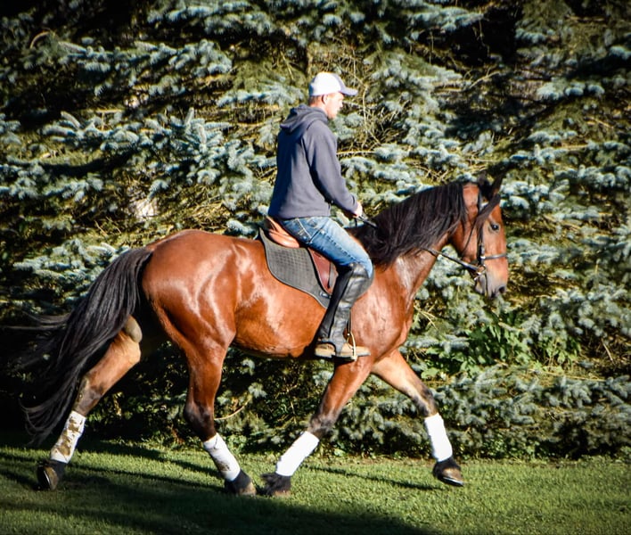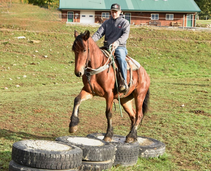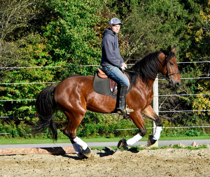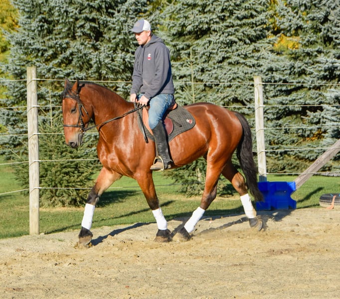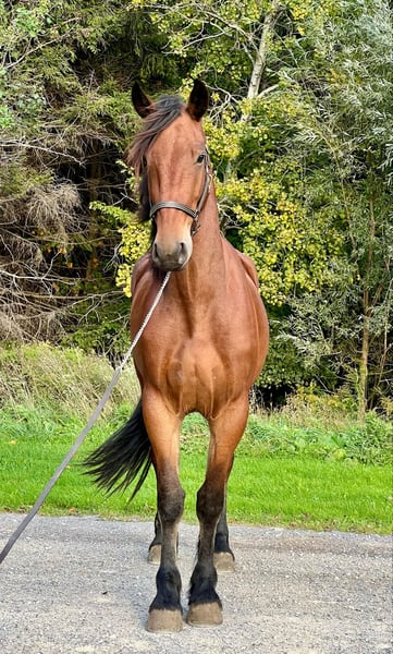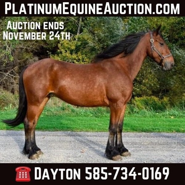 ONLINE AUCTION Place your bids at www.PlatinumEquineAuction.com Starting Bid $3500 Auction ends November 24th, 2024 Need a new saddle? Check out White Rock Saddles on our website or Facebook! Meet Jasper, a pretty bay Friesian/ Percheron cross that has the kindest eye and sweetest disposition. Standing at 15.1hh and only 4 years old, this guy is solid broke and ready to go in any direction. He will trail ride in a group or alone, and gets along with everyone. His willing and sweet attitude is hard not to fall in love with. He has a nice walk, trot, and canter and will ride western or English in the arena or on the trail. Jasper will go through water, and cross bridges with no hesitation. He has seen many different farm animals and they dont bother him. No matter what you ask him to do, he will always give his best effort. He is so fun and easy to ride, we have used him for our 14yr old lessons. He has no health issues and doesn’t require a special diet. He trailers nicely, and stands for the farrier and vet, has great feet and is currently wearing all 4 shoes because of the terrain we live in. This young horse has his whole life ahead of him, and he will make a honest and willing partner for many years to come. Contact Dayton Wolcott 585-734-0169 for more information on Jasper! ONLINE AUCTION Place your bids at www.PlatinumEquineAuction.com Starting Bid $3500 Auction ends November 24th, 2024 Need a new saddle? Check out White Rock Saddles on our website or Facebook!