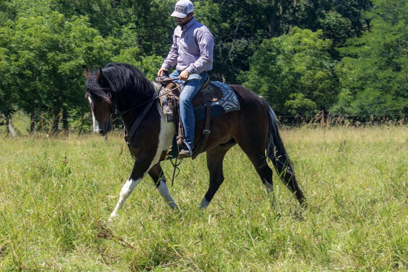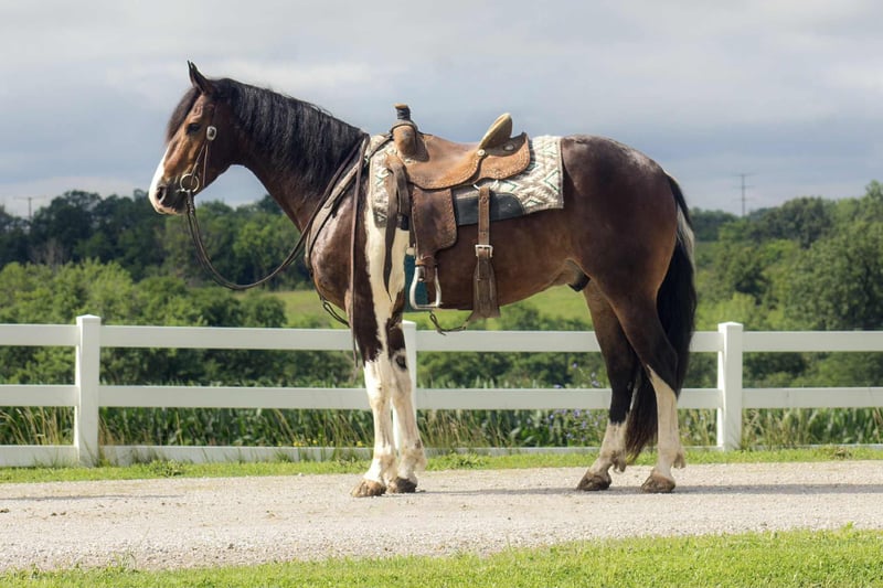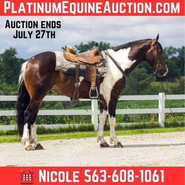 ONLINE AUCTION Place your bids at www.PlatinumEquineAuction.com Starting Bid $3500 Auction ends July 27th 2025 Need a new saddle? Check out White Rock Saddles on our website or Facebook Frito comes with beauty, brains, and versatility this exceptional Friesian paint cross gelding checks all the box’s! At just 5 yrs old Frito takes everything you throw at him in stride with a yes ma’am attitude. Standing 15.2 hands tall He’s smooth-moving with great transitions, knows his leads, and has a lovely headset in both English and western riding. Frito has been ridden in the arena, out on trails with plenty of outside miles under his belt! He loves water, good with traffic, and around dogs, cattle and big farm machinery! Goes through the obstacle course an will carry the flag. He can live outside or be stalled and gets along with others well in a heard setting. He ties, cross ties, bathes, clips, loads and hauls great. He is UTD on all cares including dental, coggins and farrier. He is 100% sound, clean legged, great feet, and blemish free. Located in Bloomfield Iowa with Nationwide hauling assistance available. Please feel free to reach out with any questions to Nicole Clark 563-608-1061. ONLINE AUCTION Place your bids at www.PlatinumEquineAuction.com Starting Bid $3500 Auction ends July 27th 2025 Need a new saddle? Check out White Rock Saddles on our website or Facebook