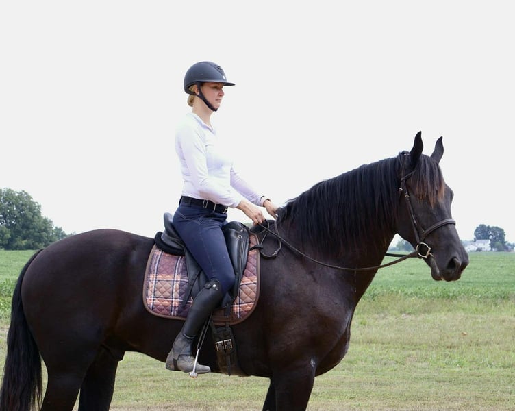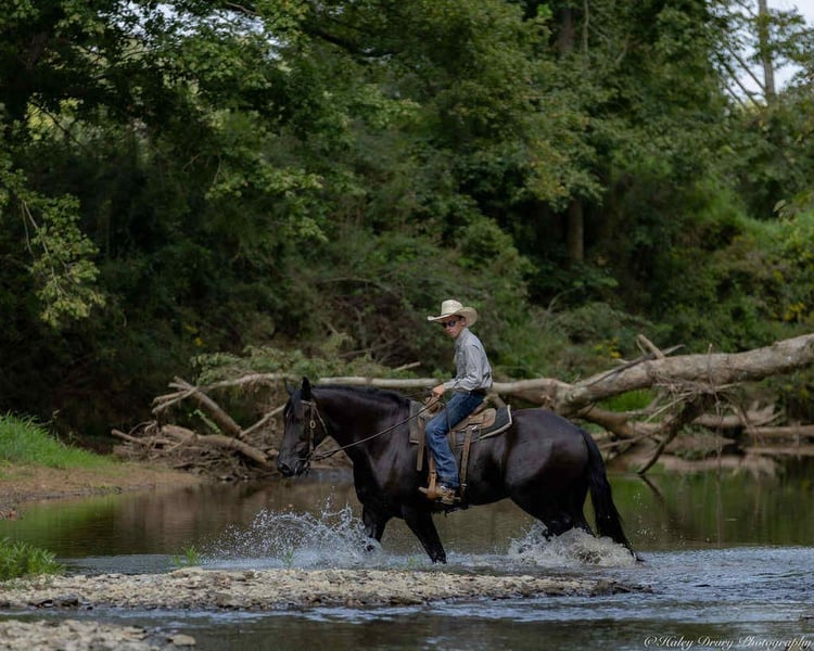🍁𝒕𝒉𝒆 𝐅𝐀𝐋𝐋 𝑺𝒑𝒆𝒄𝒕𝒂𝒄𝒖𝒍𝒂𝒓🍁 Happening now thru MONDAY | SEPTEMBER 22nd - Available EXCLUSIVELY on HorseBid's website! For more details and to register visit: www.Horsebid.com CONSIGNOR CONTACT: Jamie Thomason 270-772-1706 LOCATION: Auburn, KY BREED: Friesian Heritage Horse REGISTERED: Yes REGISTERED NAME: BIRCH FARM ROCKY COLOR: Black HEIGHT: 17.1 AGE: 5 GENDER: Gelding Add the wow factor to your barn with this breathtaking, jet-black Registered Friesian Heritage Horse! TROY is a 1/2 Friesian, 1/4 Morgan, 1/4 Percheron gelding, standing at 17.1 hands tall. He’s the picture of elegance and presence, yet his quiet, docile demeanor makes him a true pleasure to own. Whether you're in the arena, on the trail, or simply grooming in the barn, this handsome gelding is as steady and kind as they come. A versatile partner, Troy rides English, Western, and drives. His movement is a dream! A floaty trot, balanced, beautiful gaits, and smooth, easy transitions. He’s soft in the bridle, responsive, and offers the perfect combination of whoa and go—easy to adjust to the pace you want without ever being too forward. He picks up a canter from a near standstill and travels on the correct lead in both directions. A fantastic candidate for traditional or Western Dressage. Troy’s not just beautiful in the ring, he’s brave and steady out of it. He’ll quietly hack out alone or in a group, he’s surefooted, crosses water, handles rough terrain with ease, and rides across open pastures. He’s traffic safe, gun safe, unbothered by waving tarps, and proudly carries the flag. Safe and seasoned around kids, dogs, cattle, & other livestock. A true gentleman with perfect barn manners, Troy is polite in the stall or out in the pasture, always easy to catch, stands tied, cross-tied, or ground-tied, and is always respectful on the ground. He’ll stand patiently at the block or the ground for mounting. With just the raise of your hand & snap of your fingers, he’ll side pass to you whether you're on a block, a truck bed, or the fence rail. Troy is sure to be the conversation piece of any barn—always admired, always reliable. If you're looking for a horse that turns heads while keeping a calm, trustworthy heart, your search ends here. Don't miss this rare opportunity to own the horse of a lifetime! If you have any other questions or would like to meet Troy prior to adding him to your family, feel free to reach out. We can assist in arranging transportation to anywhere!