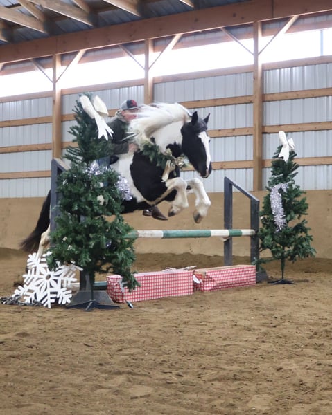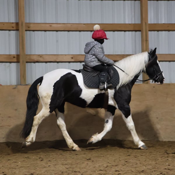 ⚜️𝐓𝐇𝐄 𝓗𝓮𝓻𝓲𝓽𝓪𝓰𝓮 𝐖𝐢𝐧𝐭𝐞𝐫 𝓒𝓵𝓪𝓼𝓼𝓲𝓬⚜️ Happening now thru MONDAY | DECEMBER 29th - Available EXCLUSIVELY on HorseBid's website! For more details and to register visit: www.Horsebid.com CONSIGNOR CONTACT: Blackstone Stables 248-390-6831 LOCATION: Howell, MI BREED: Friesian Heritage Horse REGISTERED: Yes REGISTERED NAME: Hattie’s Moonlight Dream COLOR: Black and white paint HEIGHT: 15.1 AGE: 7 GENDER: Gelding Haite's Moonlight Dream, or Dream as we call her at home nothing short of spectacular from her mind to her color, to her breeding there’s nothing she’s lacking. Dream is a 15.1hh stout made, friesian heritage horse. she is sired by the legendary Haite fan North Ster and out of a paint Haflinger cross mare. She is 7 years old. Dream has an incredible mane and tail and light feathering. She has gorgeous conformation. Not only is as stunning as a horse who walked right out of a fairy tale she is sensible. Dream will walk, trot and canter with ease. All of her gaits are as comfortable as floating on a cloud. She has had years of natural horsemanship training and will ride completely tackless at the walk, trot, canter and even over jumps. She moves off of your seat and leg effortlessly. She has been in the city, in traffic, in the woods and in water. She has been in the arena and the fields. This girl will go anywhere with any rider onboard. She goes English, Western and even bare back. She knows how to drive and loves it. Dream has all the bells and whistles when it comes to her trick training. She will sit, lay down, say yes and no and will rear up on command. She listens to her persons ques with the most attention and respect. Dream has been trained by the absolute best in the business. She has seen tarps, umbrellas, balls, bridges, inflatable dinosaurs and much more. You will be hard pressed to spook her. This mare has been on several hunter paces. She has also been used to round cattle. In the arena she jumps in beautiful form. She has been to schooling shows and used in lessons for kids as young as 5 years old. This is a unique find that would be an asset to anyone looking for a feathered horse that anyone can get along with anyone in any situation. Dream has been a very loved family member only having one owner since she was a baby. She is only being offered for sale to the best of homes as her owner has a few upcoming babies to bring along. Please watch her video, she speaks volumes for her self. Please call or text Ellesse Schwartz at 248-390-6831. Dream lives in Howell, MI 48855