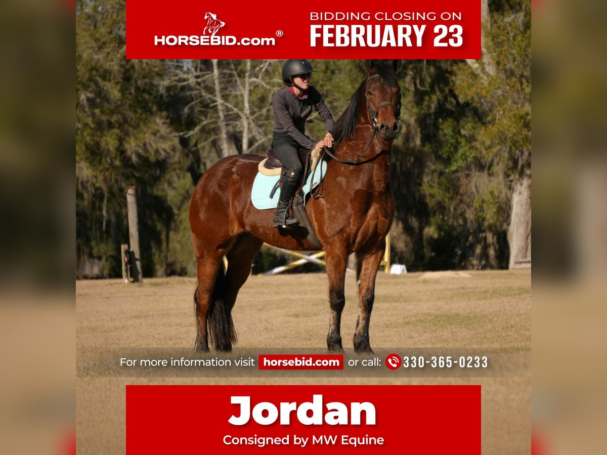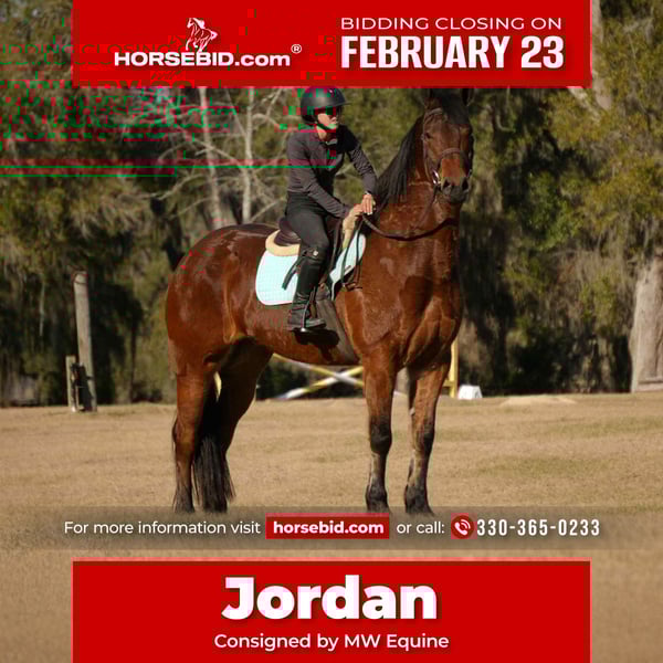 💎 𝐓𝐇𝐄 𝓓𝓲𝓪𝓶𝓸𝓷𝓭 𝐒𝐇𝐎𝐖𝐂𝐀𝐒𝐄 💎 Happening now thru MONDAY | FEBRUARY 23rd - Available EXCLUSIVELY on HorseBid's website! For more details and to register visit: www.Horsebid.com CONSIGNOR CONTACT: MW Equine 330-365-0233 LOCATION: Fresno, OH BREED: Friesian cross REGISTERED: No REGISTERED NAME: Jordan COLOR: HEIGHT: 16 AGE: 7 GENDER: Gelding Meet Jordan – Flashy 7-Year-Old Friesian Cross Gelding 16.0 HH | Bay | Athletic & Versatile Prospect Let me introduce you to the flashiest little bay horse around — Jordan! This handsome 7-year-old Friesian cross gelding stands a perfect 16 hands and is a true showstopper with his beautiful expression and presence. Jordan is a fun, versatile ride suited for an advanced rider or an intermediate adult looking for a flashy partner. He’s big enough for everyone to enjoy and has experience riding both English and Western. In the arena, he confidently walks, trots, and lopes circles with ease. He’s also proven himself to be a great partner around the farm and a fun trail horse. Jordan has been hauled to numerous arenas, trailers nicely, and stands well for the farrier. Out on the trails, he confidently crosses logs, navigates brush, and handles obstacles with a great attitude. Jordan has been introduced to cross country courses and absolutely loves it — showing confidence and enthusiasm. He would make a great prospect for someone interested in developing a cross country horse. Always up for adventure, Jordan enjoys trail rides, farm work, and relaxing Sunday rides down the back roads. He has an excellent foundation and has been under saddle for a few months now, riding very nicely. While he is not a finished horse, he is very well started and has tons of potential — making him a fantastic project for someone wanting to bring along a talented young gelding. Highlights: 7-year-old Friesian cross gelding 16.0 HH bay with flashy presence English & Western Walks, trots, and lopes in the arena Trail proven & obstacle friendly Introduced to cross country and loving it Hauled to multiple arenas Trailers well & stands great for the farrier No buck, bolt, or rear No bad habits Health: UTD on teeth, trims, Coggins, etc. Nationwide shipping available For more info, contact Marcus: 330-365-0233 Located in Fresno, Ohio