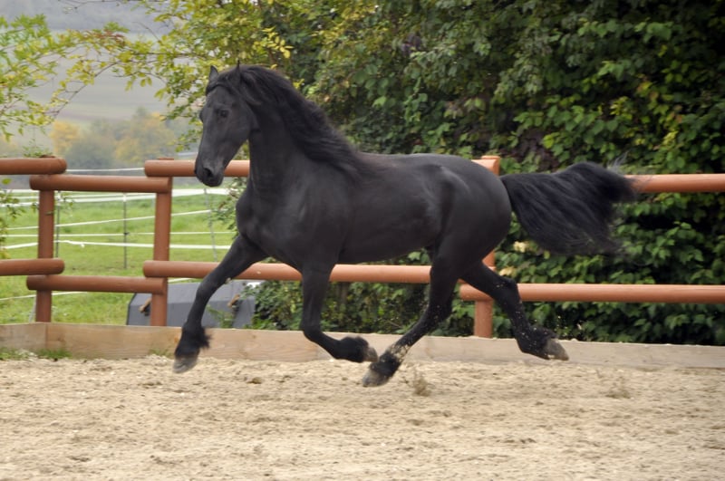 Bardzo nowoczesny i sportowy holenderski fryz z bardzo dobrym ruchem. Posiada piękny zakres ruchu, mocne zadnie oraz świetne nastawienie do pracy. Jest również poprawnie zbudowany i ma długą grzywę. Podczas pracy – niezależnie od tego, czy w czworoboku, czy przed wózkiem (jeździł w zaprzęgu 1/2/4-spównym) – zawsze chętnie współpracuje, wykazuje przy tym przyjemną chęć do pracy i naprawdę czerpie z niej radość. Jeśli szukasz fryza z sportowymi ambicjami, to jest właśnie on. Ma niezwykle kochający i spokojny charakter i zrobi wszystko dla swojego człowieka. Fryz, który czerpie przyjemność z pracy i zawsze chce robić wszystko poprawnie. Jest bardzo chętny do pracy – przy tym zawsze kontrolowalny. Relaksujące przejażdżki, zarówno solo, jak i w grupie, są dla niego świetne. Również tutaj zawsze jest pod kontrolą. Prosimy o zapytania wyłącznie telefonicznie.