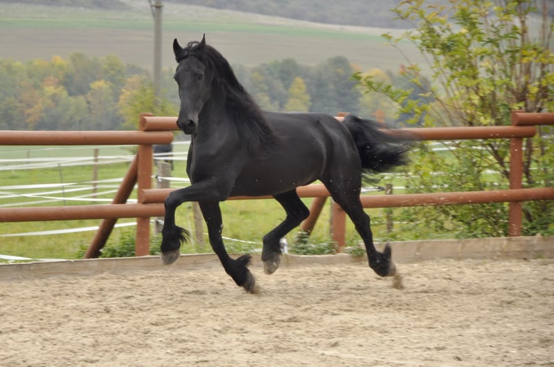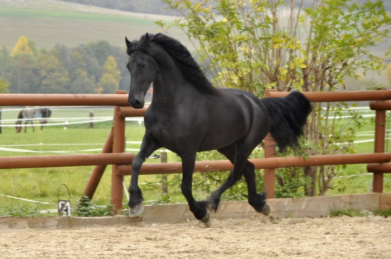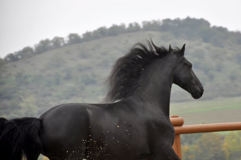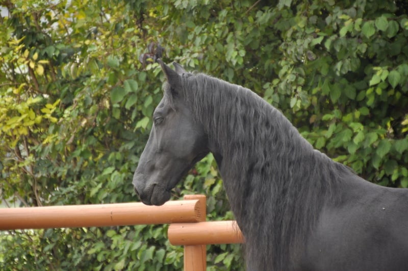 Ein sehr moderner und sportlicher Friese NL mit sehr guten Bewegungen. Er hat einen schönen Raumgriff, eine starke Hinterhand und eine tolle Arbeitseinstellung. Zudem ist er korrekt gebaut und hat eine lange Mähne. Bei der Arbeit - egal ob im Viereck oder vor dem Wagen (er ist 1 / 2 / 4 spännig gefahren) arbeitet er immer gut mit, hat einen angenehmen Fleiß und hat wirklich Spaß an der Arbeit. Wer einen Friesen mit sportlichen Ambitionen sucht, ist hier genau richtig. Er hat einen unglaublich lieben und ruhigen Charakter und würde alles für seinen Menschen tun. Ein Friese, dem die Arbeit Spaß macht und der immer alles richtig machen möchte. Er ist sehr leistungsbereit - dabei aber immer kontrollierbar. Entspannte Ausritte, egal ob alleine oder in der Gruppe, findet er super. Auch hier ist er immer kontrollierbar. Anfragen bitte ausschließlich telefonisch
