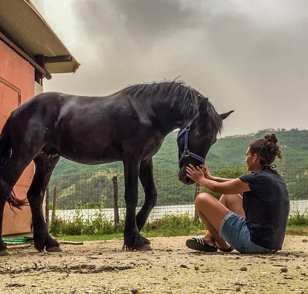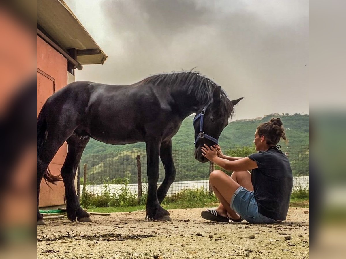 Alex, un potro frisón negro de 1,65 m (17 hh), de 7 años