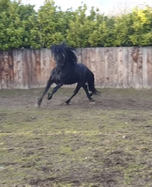 Stupendo cavallo friesian nero, alto circa 1,65 m, di 7 anni. Boo è un cavallo estremamente bello e talentuoso. Sembrerebbe quasi fluttuare sul terreno in tutte le sue andature. È stato montato sia in stile inglese che western, e ha accumulato molte ore all'aperto, oltre a training in arena. Non ha problemi a viaggiare in montagna durante battute di caccia o tranquille passeggiate in natura. È stato esposto a selvaggina morta ed è stato imballato. Boo sa cosa significa lavorare in fattoria ed è familiare con il bestiame e la corda. È un cavallo amichevole che ama l'attenzione. Ti incontrerà alla porta, pronto per essere preso e per affrontare qualsiasi cosa. In arena, Boo ha andature molto fluide ed eleganti. Esegue cerchi raccolti al galoppo, ha un ottimo allungato e un trotto lento e rilassato. Ha anche un ottimo arresto e arretra molto morbido e corretto. Boo è un gelding molto equilibrato, che può intraprendere molte strade diverse ed è pronto per la sua casa definitiva.